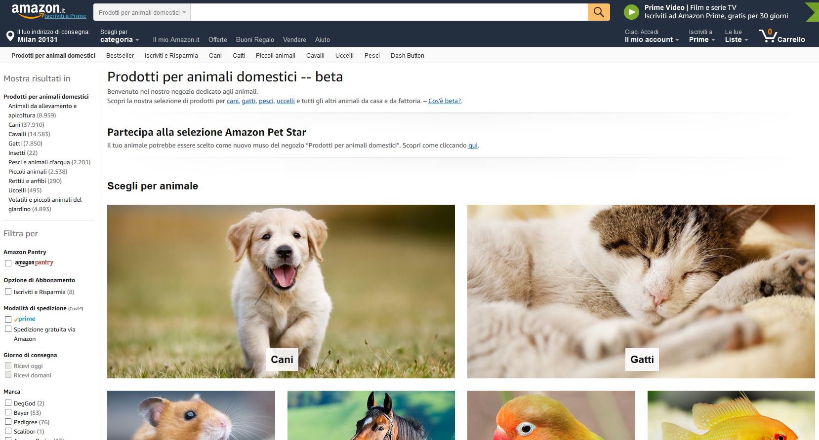 News » Apre oggi su Amazon.it il negozio Animali domestici
