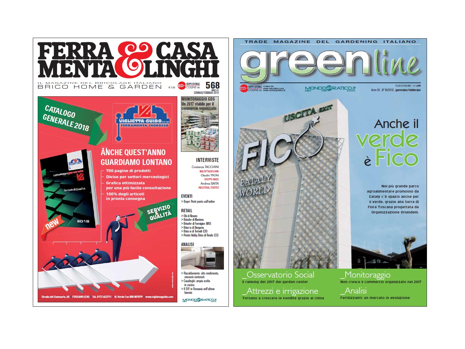Collegandosi a questo link è possibile scaricare gratuitamente il numero di gennaio/febbraio 2018 dei nostri magazine GreenLine e Ferramenta&Casalinghi. Tra gli argomenti principali, il monitoraggio del 2017 dei punti vendita brico-garden in Italia.