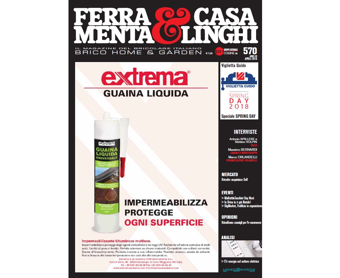 Collegandosi a questo link è possibile scaricare gratuitamente il numero di aprile 2018 del nostro magazine Ferramenta&Casalinghi. Tra gli argomenti principali, lo speciale Viglietta Guido Spring Day e le interviste ad Antonio Spillere e Stefano Volpin di Valex e Massimo Bernardi di Caminetti Montegrappa. E ancora, l'acquisizione di Self da parte di Bricofer e gli eventi di Malfatti&Tacchini, Brico io e Bigmat.
