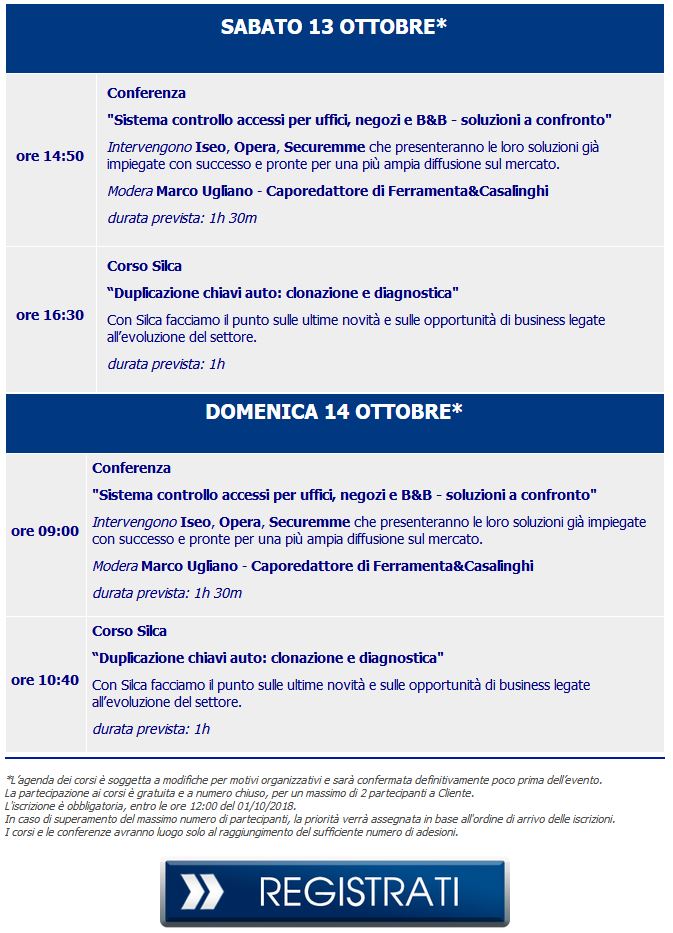Nell’area espositiva i partecipanti potranno beneficiare di focus formativi di prodotto, con dimostrazioni tecniche di utilizzo e applicazioni, per completare le proprie competenze professionali. Non mancheranno, inoltre, anche per l’edizione 2018 di A.P.FER EXPO, importanti approfondimenti su tematiche particolarmente rilevanti per il settore, come la gestione di piccoli impianti con controlli accessi, l’introduzione di innovativi sistemi nel campo della duplicazione chiavi auto e lanci di prodotti stagionali per tutte le ferramenta.