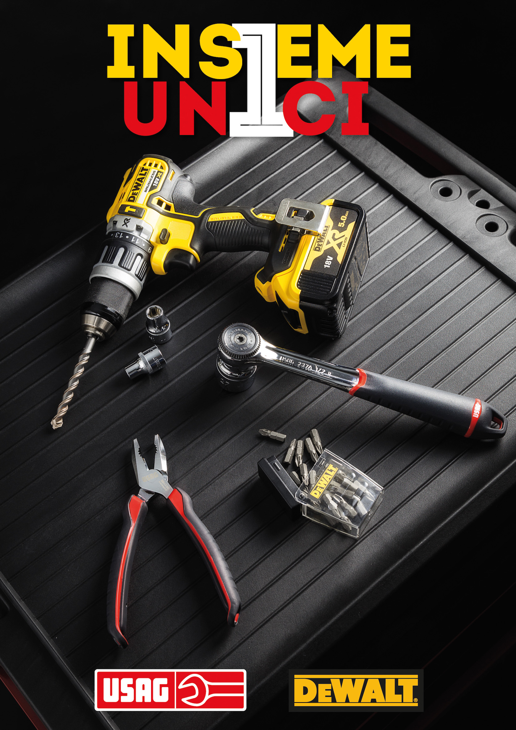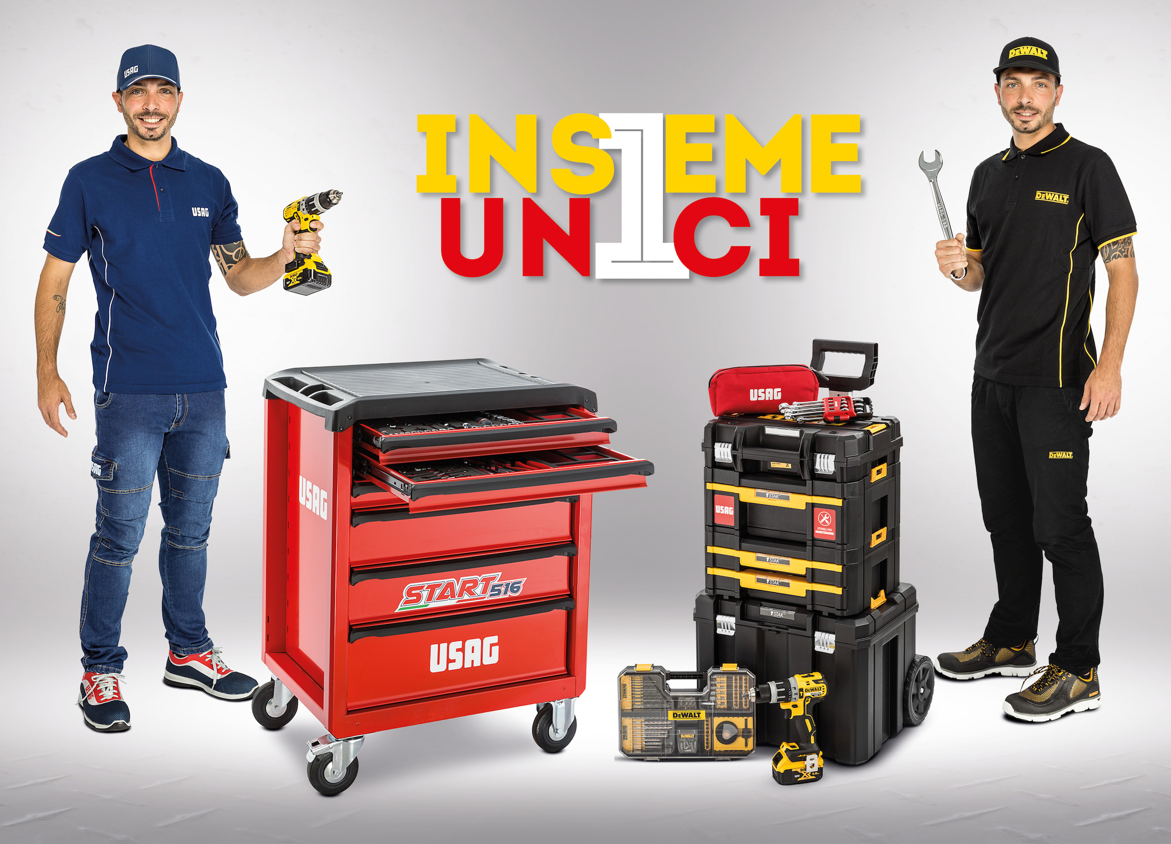 Grazie alla promo “INSIEME UNICI” è possibile acquistare a prezzi molto vantaggiosi, carrelli portautensili Usag abbinati ad avvitatori o trapani DeWalt oppure Trolley TSTAK di DEWALT con trapano avvitatore e 100 accessori per forare e avvitare completi di assortimenti USAG.