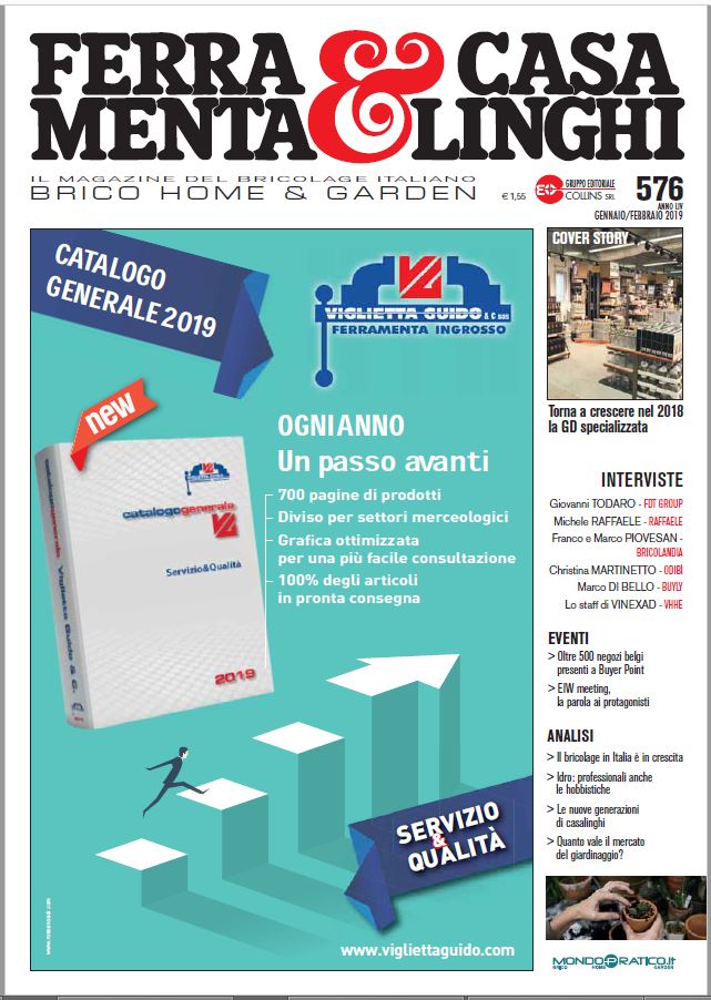 Collegandosi a questo link è possibile scaricare gratuitamente il numero di febbraio 2019 del nostro magazine Ferramenta&Casalinghi. Cover story di questo numero, il monitoraggio dei punti vendita della GDS brico. Tra gli altri argomenti principali, le interviste a Giovanni Todaro di FDT Group e a Michele Raffaele di Gruppo Raffaele e gli approfondimenti relativi alla prossima edizione di Buyer Point e al recente meeting del consorzio dei grossisti europei EIW.