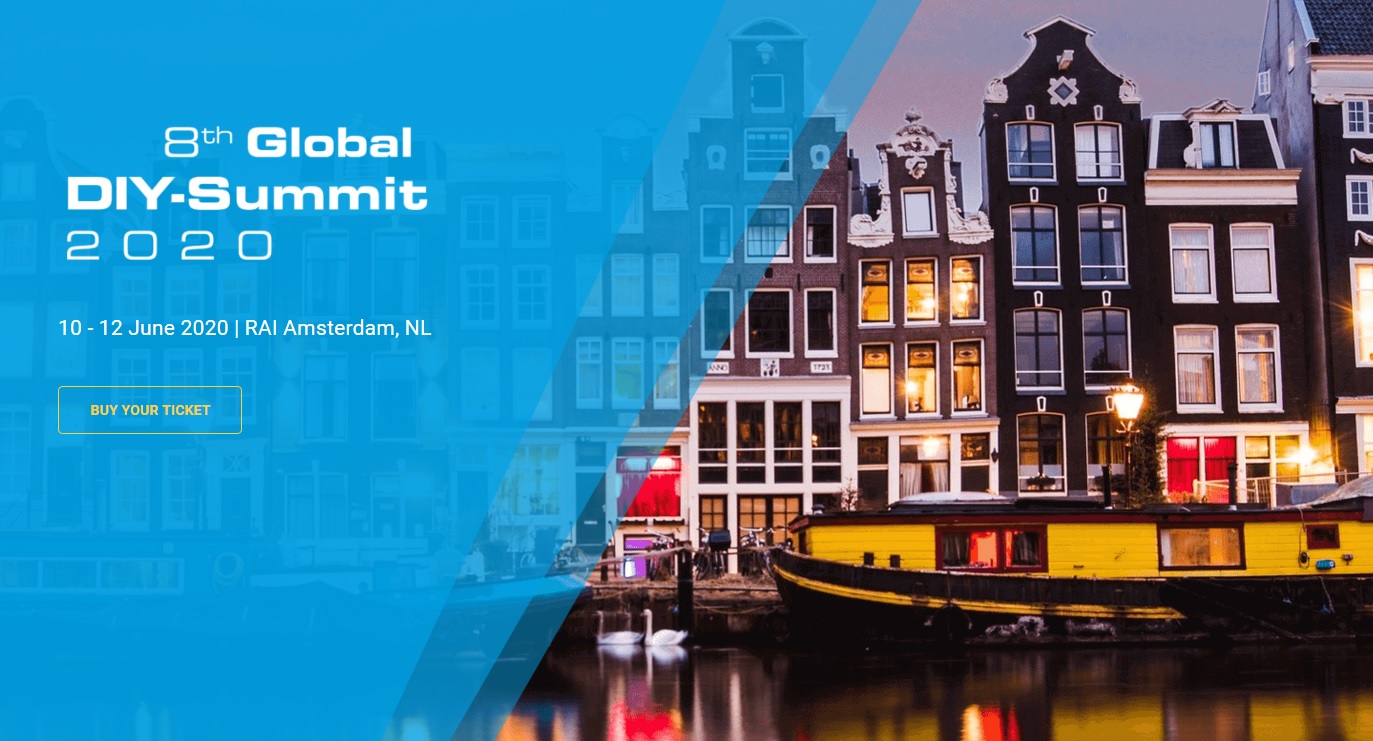 Oltre 1.100 manager, provenienti da 55 Paesi, sono attesi ad Amsterdam dal 10 al 12 giugno 2020 per l'ottava edizione di Global DIY Summit, il più importante evento convegnistico mondiale del comparto DIY.