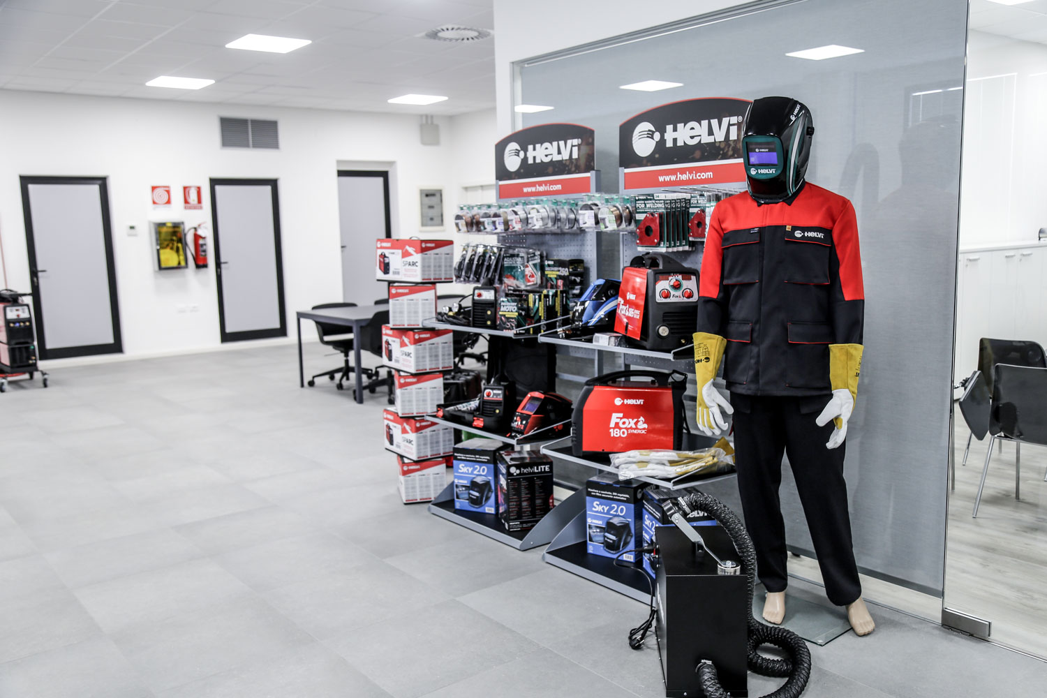 - Sala espositiva permanente. I marchi esposti: HELVI, HELVI TECH, helviLITE e Pro Spot;
