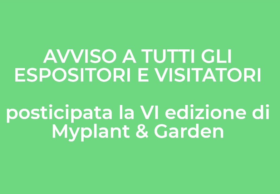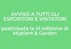 La fiera Myplant & Garden è stata rinviata a settembre a causa dell'evoluzione della situzione inerente il Coronavirus in Italia (la manifestazione avrebbe dovuto svolgersi a Milano dal 26 al 28 febbraio).