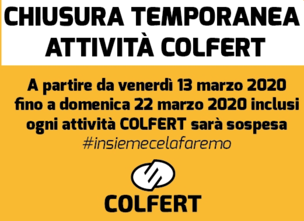 Colfert sospende tutte le attività fino a domenica 22 marzo