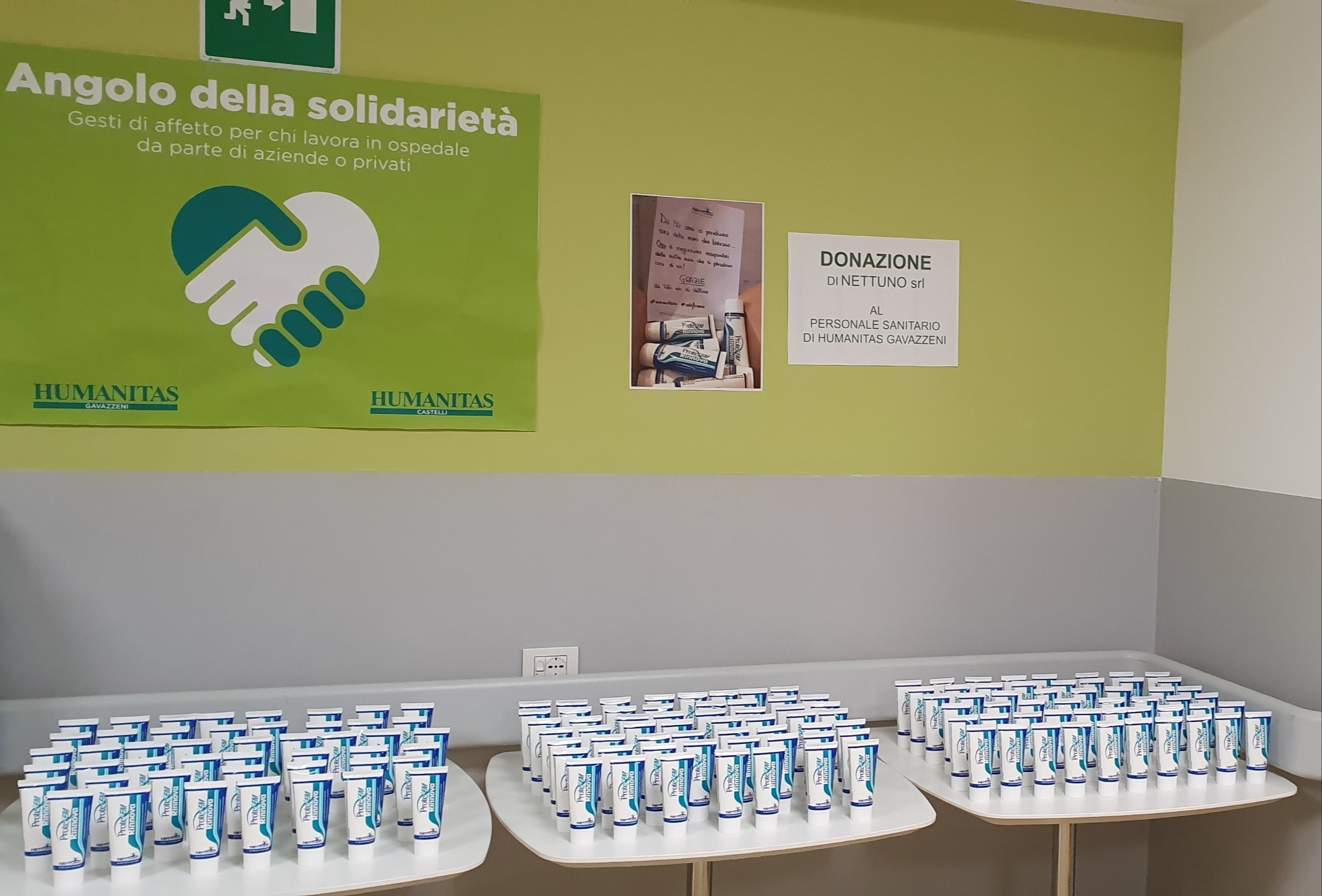 Nella consapevolezza dei danni arrecati alla pelle dal frequente uso di mascherine e gel igienizzanti, da Nettuno sono state spedite, nemmeno una settimana fa, più di 6 mila confezioni di creme emollienti e lenitive destinate agli operatori sanitari degli ospedali Papa Giovanni XXIII, San Giovanni Bianco e presidio ospedaliero della Fiera di Bergamo, oltre che ad Humanitas Gavazzeni, agli ospedali facenti capoASST Bergamo EST(Seriate, Alzano Lombardo, Lovere, Piario, Gazzaniga, Calcinate), ASST Bergamo OVEST (Treviglio, Romano di Lombardia) ed a tutti gli operatori della Centrale 118.