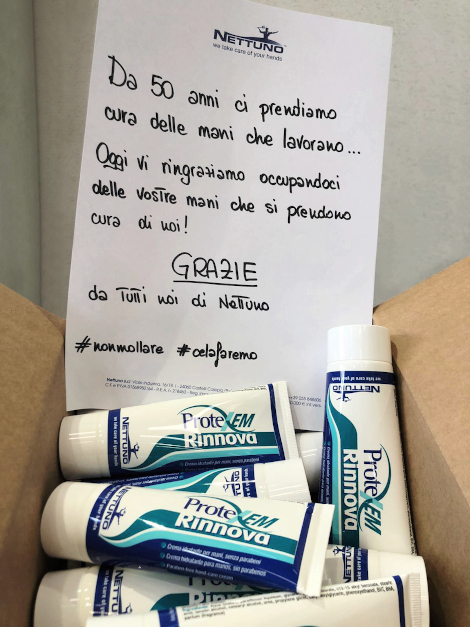 Inoltre, prendendosi da 50 anni cura delle mani che lavorano, come poteva Nettuno non occuparsi di quelle di medici, operatori sanitari e volontari che si stanno prendendo cura di noi in questo momento?
