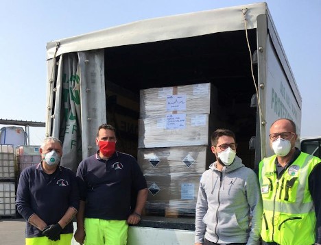 A tal proposito ha effettuato una donazione di detergenti professionali in pasta e crema, lozioni idratanti, igienizzanti mani e saponi con azione antibatterica all' Associazione Nazionale Alpini, destinati a tutti gli artigiani e volontari impegnati nei lavori di realizzazione dell’ospedale della Fiera di Bergamo.