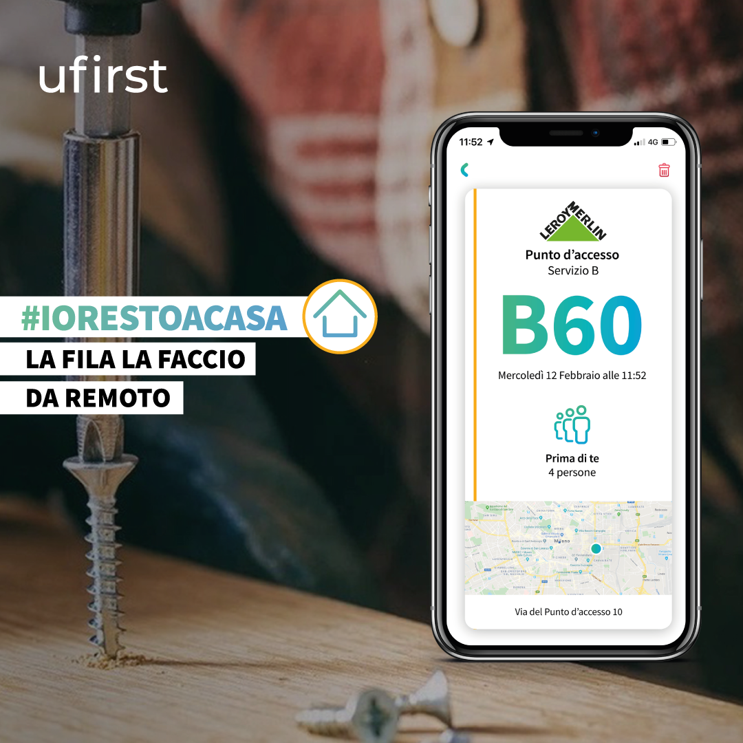 Leroy Merlin ha scelto ufirst, l’innovativa piattaforma disponibile via app per gestire in modo sicuro, organizzato e rispondente alla necessità di distanziamento sociale, l’accesso all’interno dei propri punti vendita.