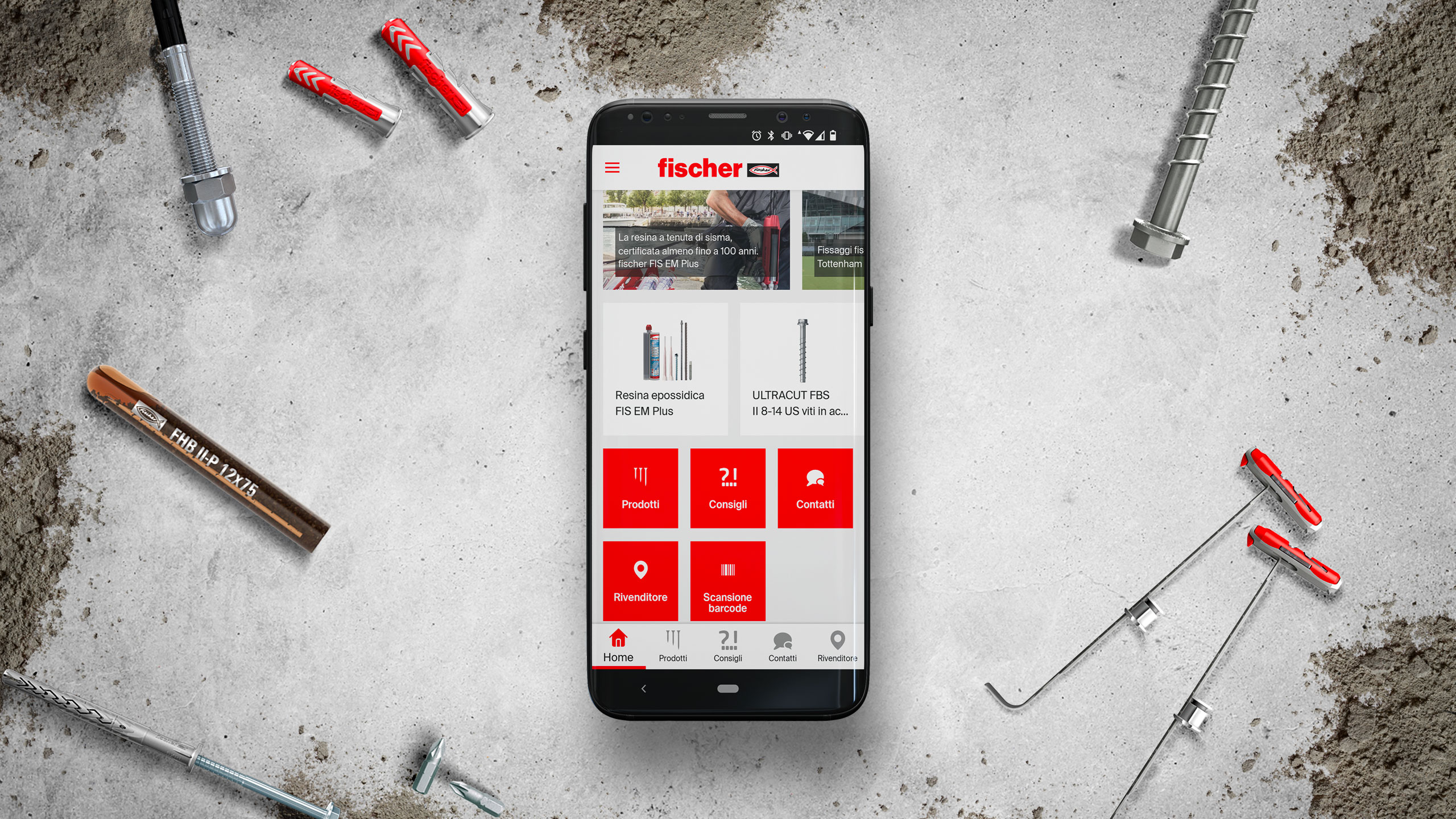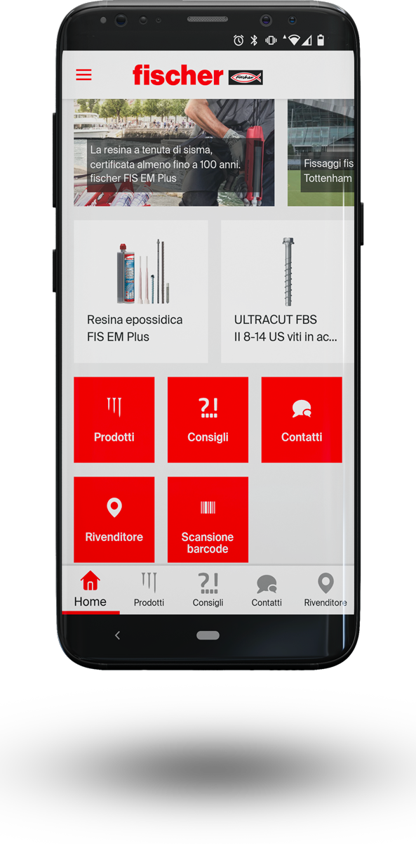 fischer Professional è scaricabile gratuitamente da Google Play Store e dall'App Store di Apple.Intuitiva, semplice e utilissima, fornisce risposta in pochi attimi a ogni dubbio di fissaggio.