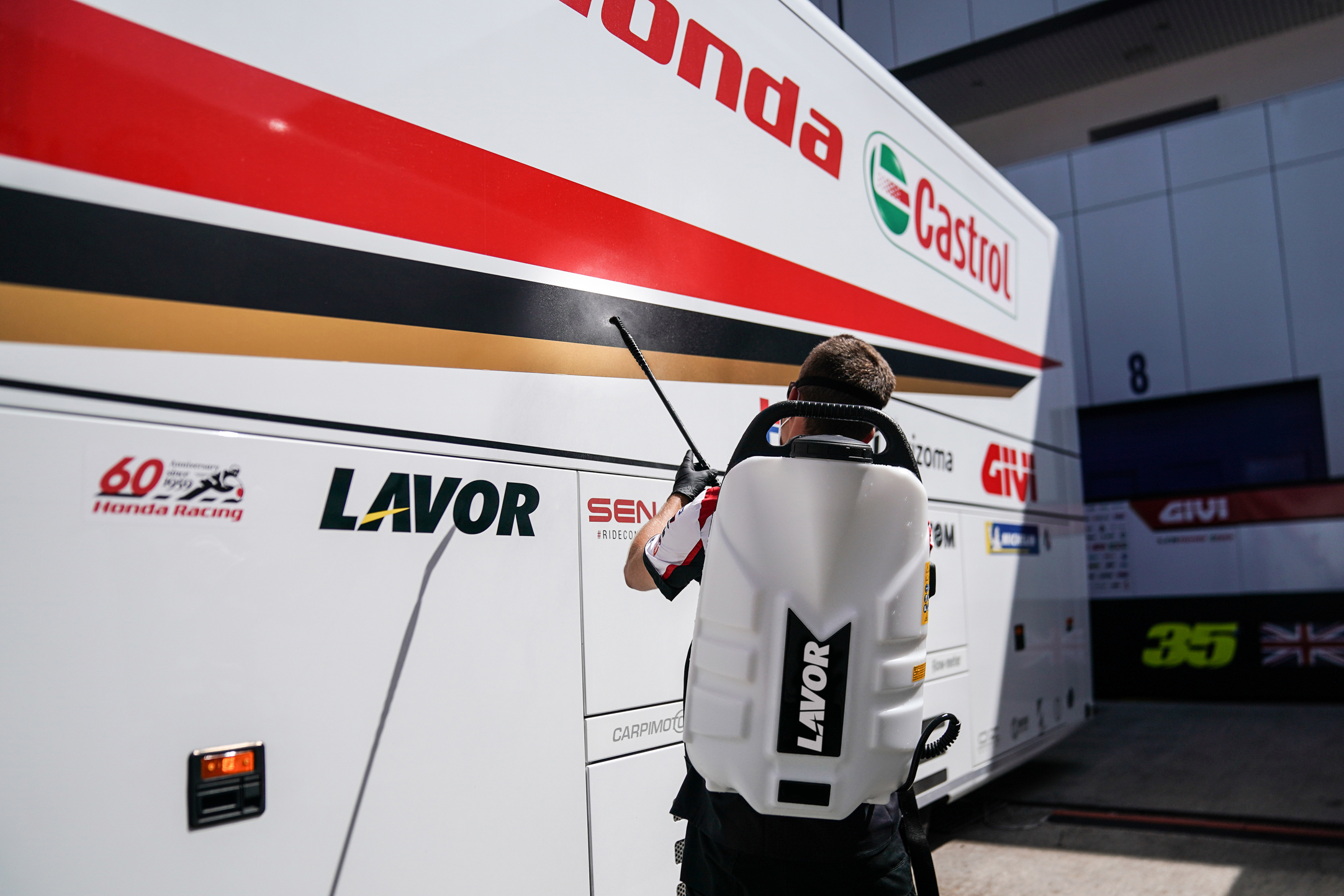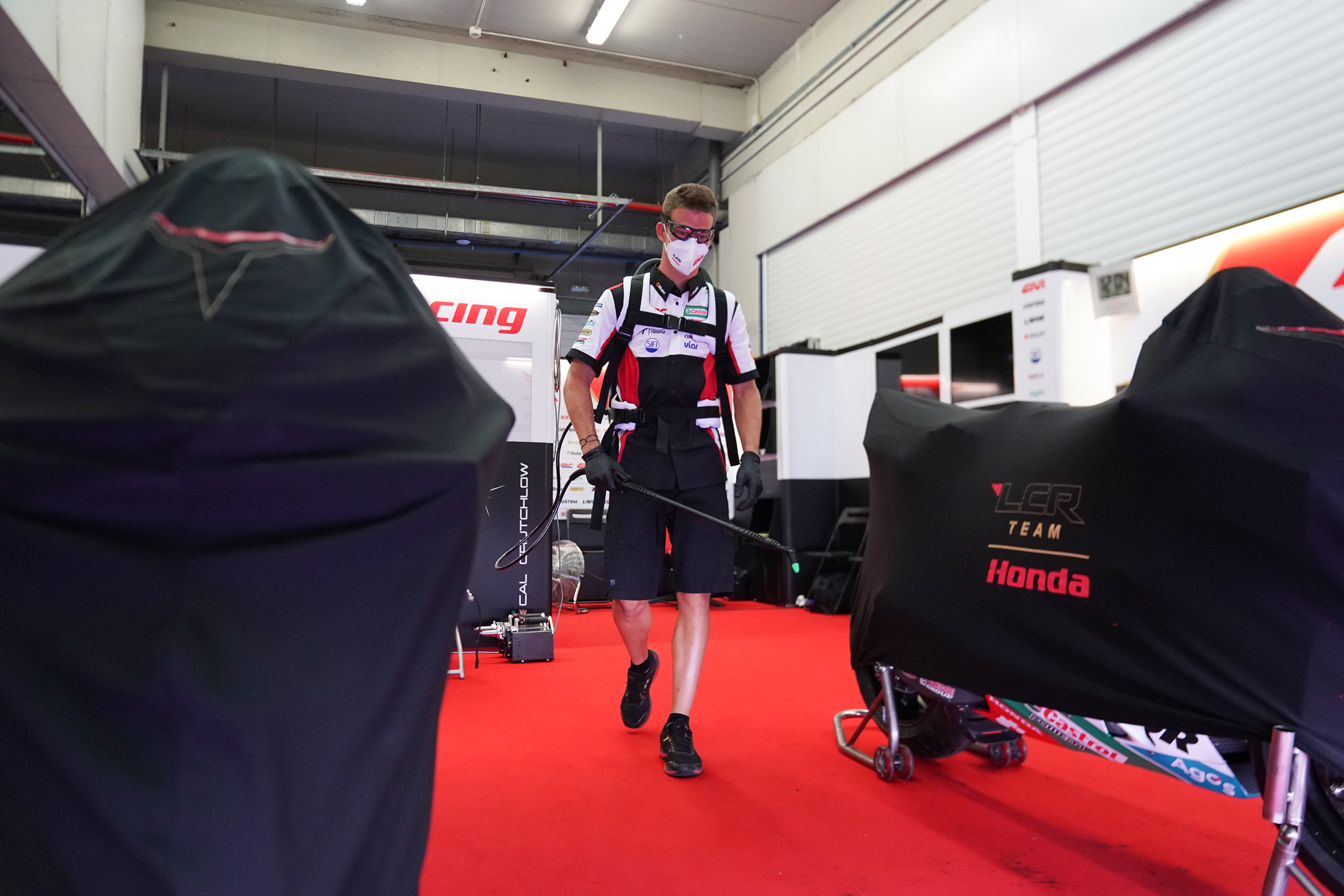 Sanificazione perfetta per i Team LCR Honda di Lucio Cecchinello e Repsol Honda nella ripartenza del campionato mondiale MotoGP™ dopo il lockdown, grazie alla collaborazione con LAVOR.