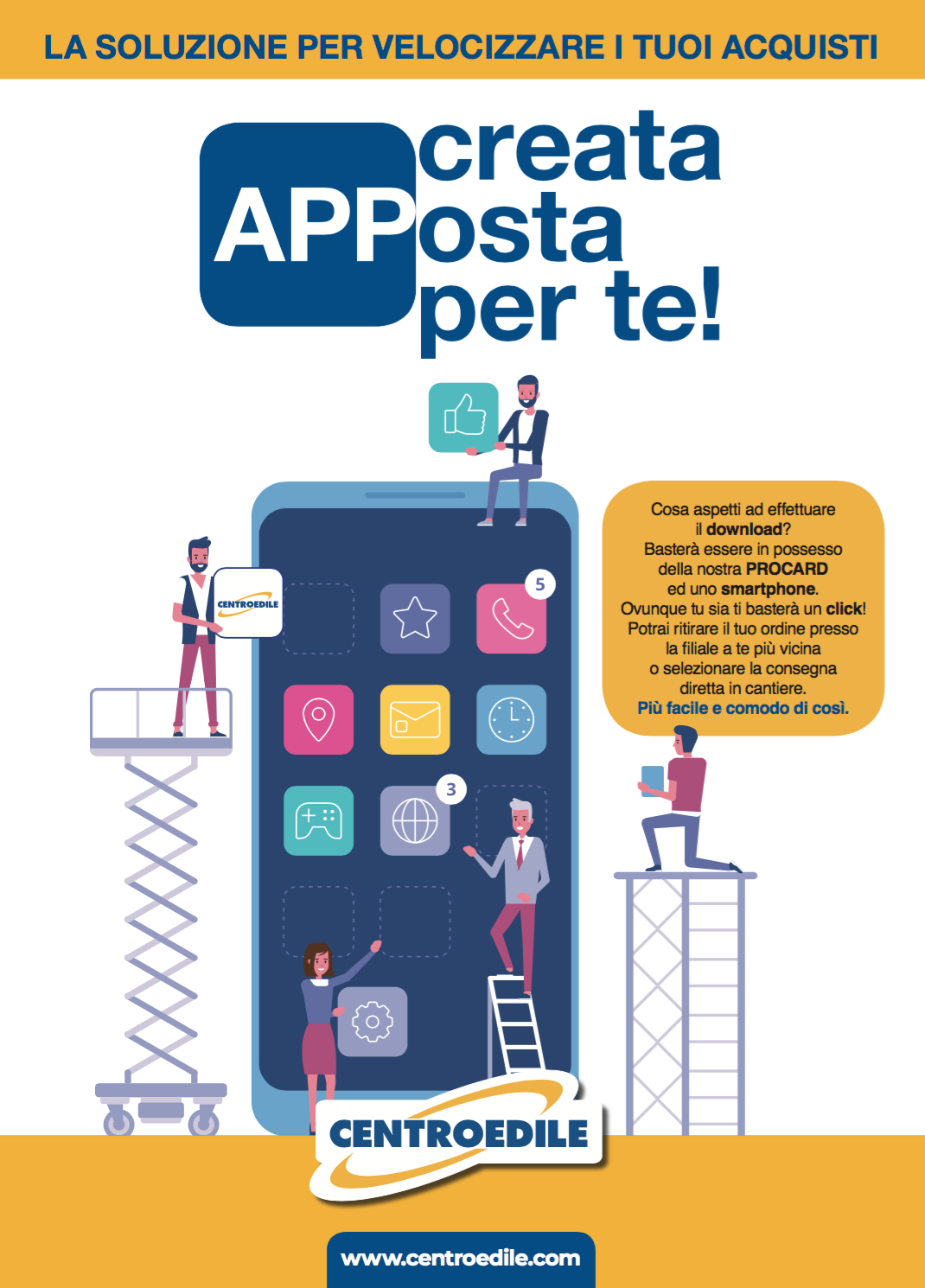CENTROEDILE APP è stata concepita per un utilizzo estremamente semplice e intuitivo ed è dedicata a tutti i titolari della PROCARD Centroedile, che può essere richiesta gratuitamente in ogni punto vendita o via mail all’indirizzo marketing@centroedilemilano.com.