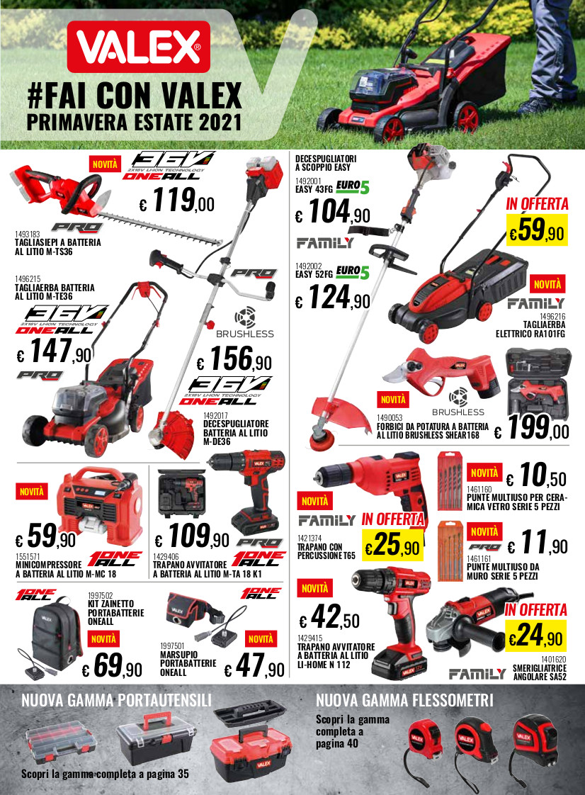 Le novità e le offerte più interessanti, completi di prezzi al pubblico, sono concentrate nel Volantino Primavera/Estate 2021, uno strumento agile e di facile consultazione in linea con la stagionalità, in cui giardino, outdoor e lavori di manutenzione e ristrutturazione la fanno da padroni.