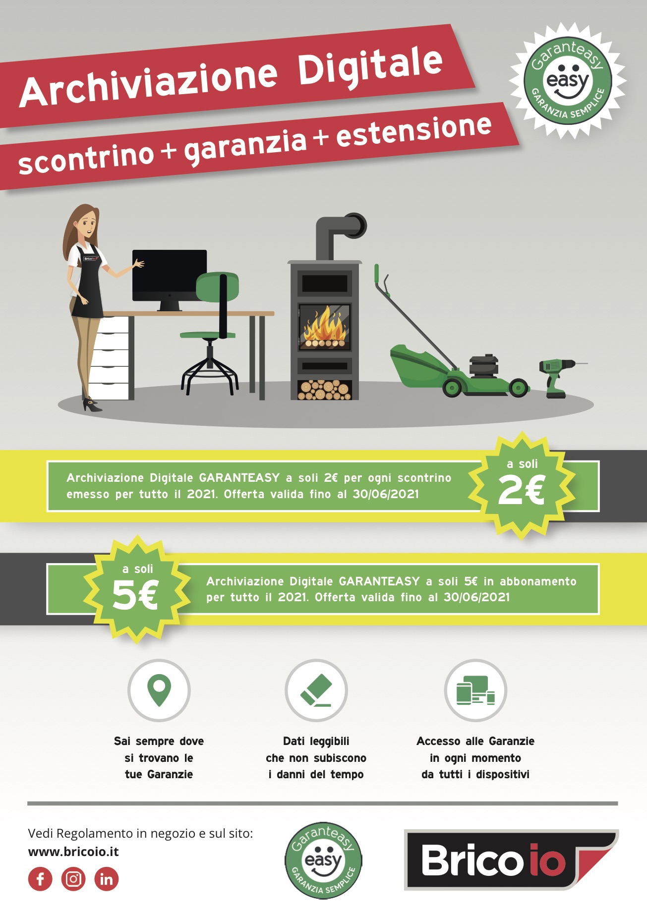 I clienti Brico io potranno scegliere se acquistare di volta in volta il servizio Garanteasy o di sottoscrivere un abbonamento annuale grazie al quale saranno archiviate le garanzie di tutti gli acquisti effettuati presso uno qualsiasi dei punti vendita della catena.