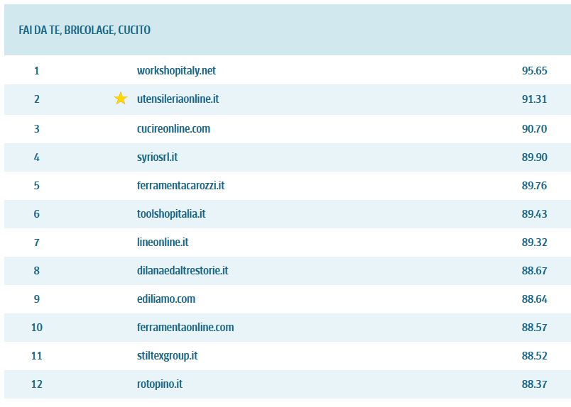 Il sito web www.workshopitaly.net del punto vendita fisico Workshop di Mozzate, in provincia di Como, è l'e-commerce di bricolage più apprezzato dagli utenti, secondo una classifica stilata dal Corriere della Sera.
