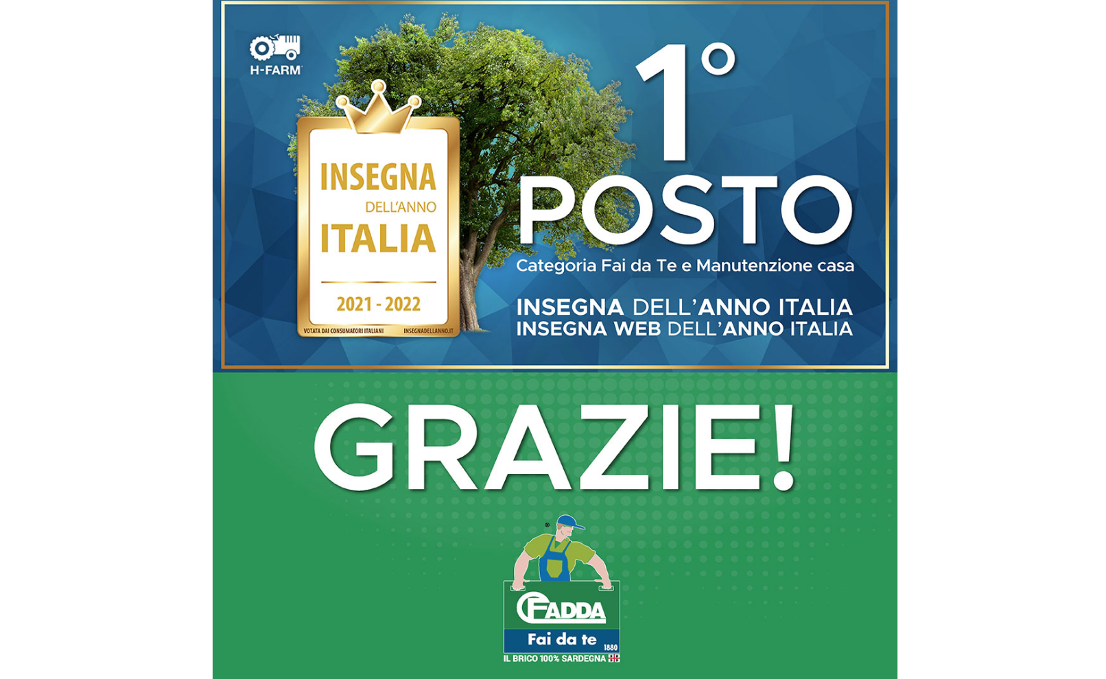 Importante e prestigioso doppio riconoscimento per CFadda, il brico 100% Made in Sardegna, che si è aggiudicata il premio di migliore insegna fisica e web nella categoria fai da te, piazzandosi davanti ai grandi player internazionali del settore.