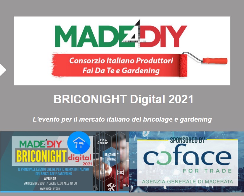 Lunedì 20 dicembre, dalle 16 alle 18, si terrà l'edizione 2021 di Briconight, l'evento del Consorzio Made4DIY, che si svolgerà per il secondo anno online come evento digitale.