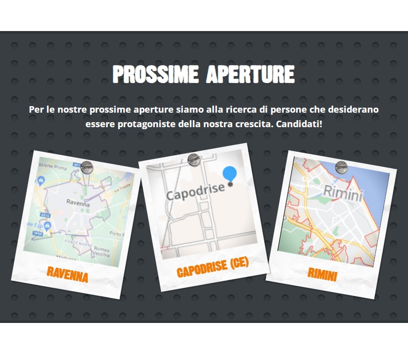 - 12 nuovi punti vendita nei prossimi tre anni su tutto il territorio nazionale, in Piemonte, Lazio, Lombardia, Sicilia solo per citare alcuni possibili siti;