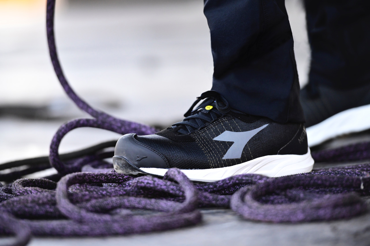 grazie al puntale in fibra di carbonio, la tomaia in tessuto tecnico multifibra estremamente traspirante e la suola Litebase by Vibram. Queste caratteristiche la rendono ideale per chi, come gli operatori del palco, ha bisogno di effettuare movimenti rapidi che necessitano del massimo della reattività.
