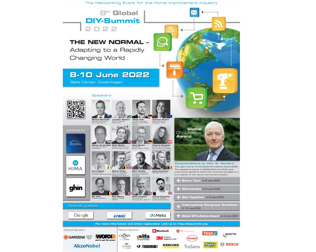 Il Global DIY Summit, l'evento mondiale del fai da te, si svolgerà in presenza dall'8 al 10 giugno 2022 al Bella Center di Copenaghen.