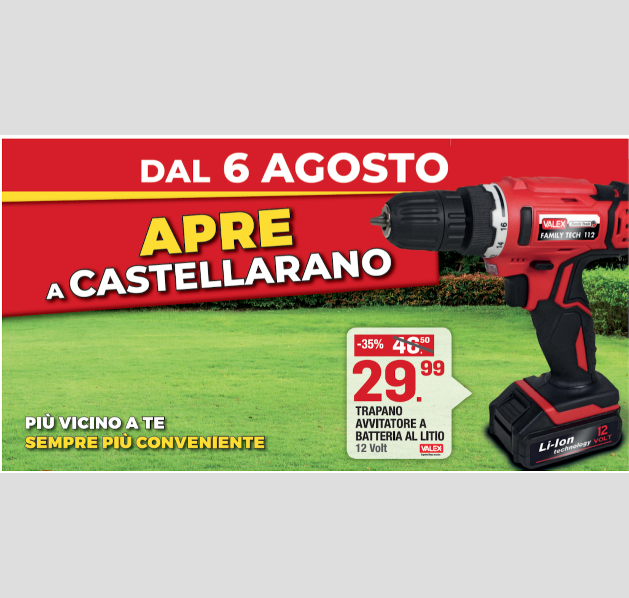 Dal 6 agosto apre il nuovo Brico OK a Castellarano, provincia di Reggio Emilia, in via Pifferi 3, un nuovo punto vendita dedicato al Fai da Te con oltre 18.000 referenze e un volantino dai prezzi speciali in esclusiva per l'apertura.