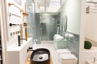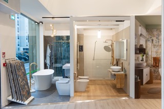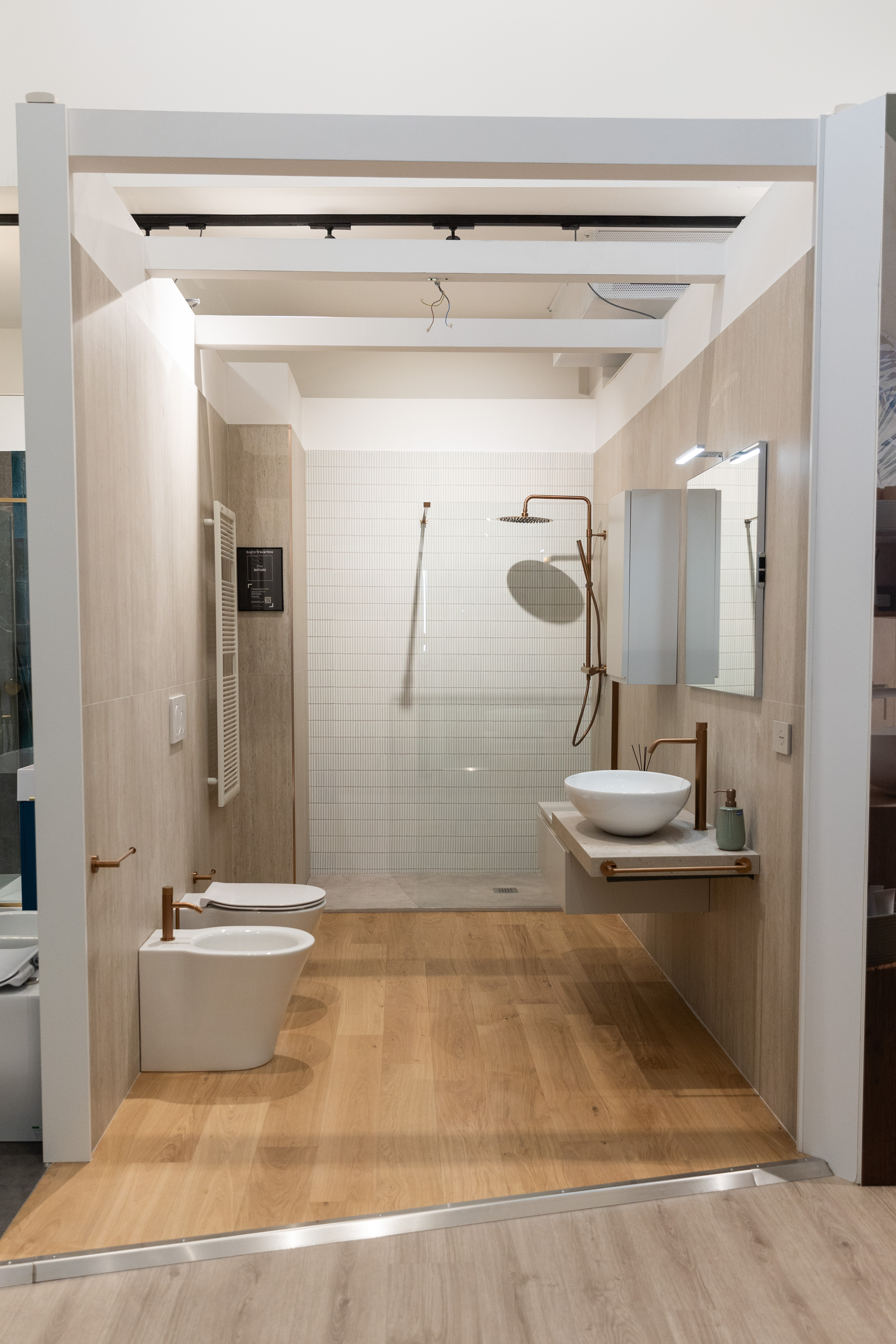 Il nuovo Showroom Casa di Leroy Merlin si sviluppa su due piani, per una superficie complessiva di 360mq: al piano terra i prodotti bagno e suolo, al primo piano porte e finestre. Si tratta del primo showroom in un contesto urbano pronto ad accogliere e mostrare in un unico spazio commerciale i diversi “mondi” (lo spazio di Roma è infatti dedicato solo a porte e finestre, quello di Milano al bagno).