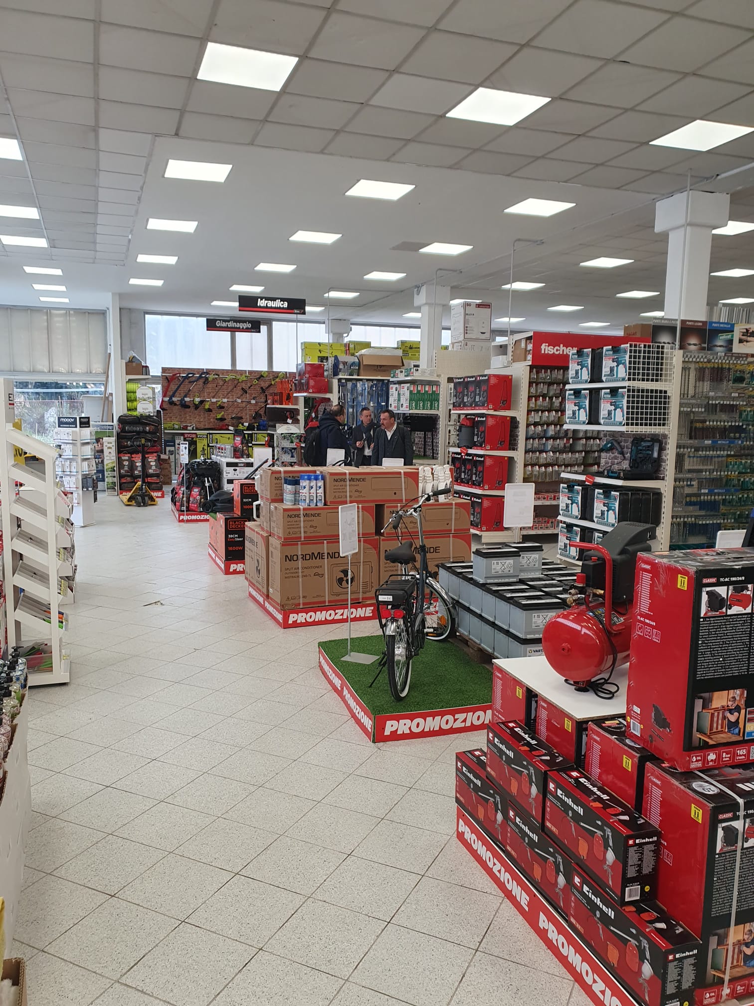 Nei circa 1.000 mq. propone oltre 25.000 articoli nei reparti tradizionali e tecnici del “fai da te”: Utensileria elettrica e manuale, Elettricità, Idraulica, Accessori e Arredo Bagno, Ferramenta, Scaffali, Sistemazione e Arredo casa, Legno, Vernici, Giardinaggio, Arredo giardino, Auto e Bici; affiancati dal nostro corner “Area Kasa”, dedicato al mondo del tessile, della cucina, della tavola e del piccolo elettrodomestico.