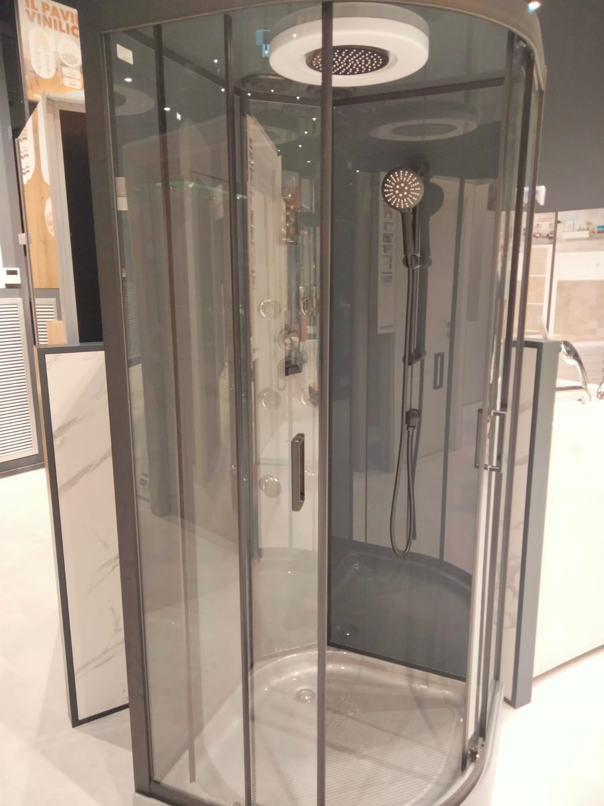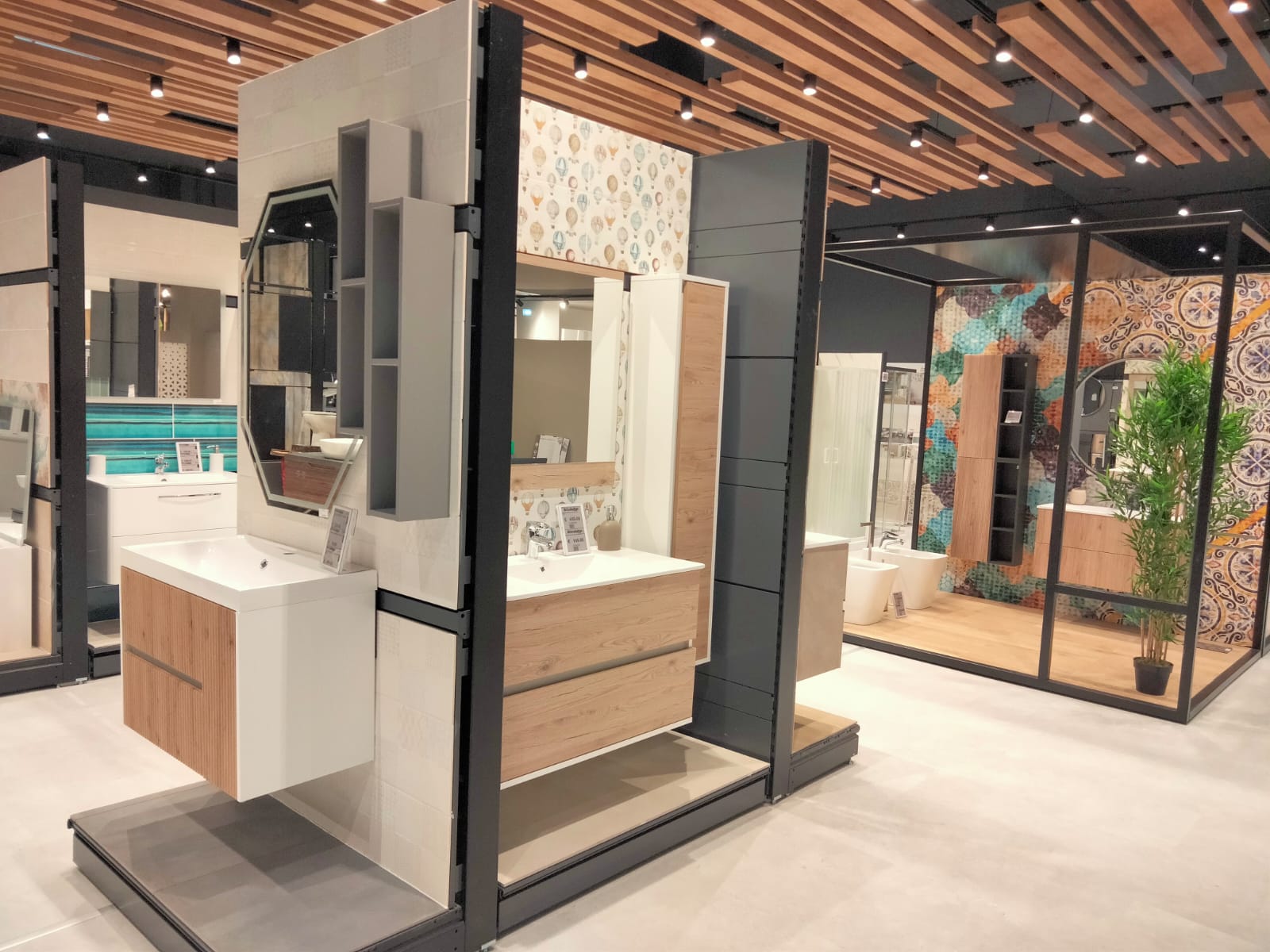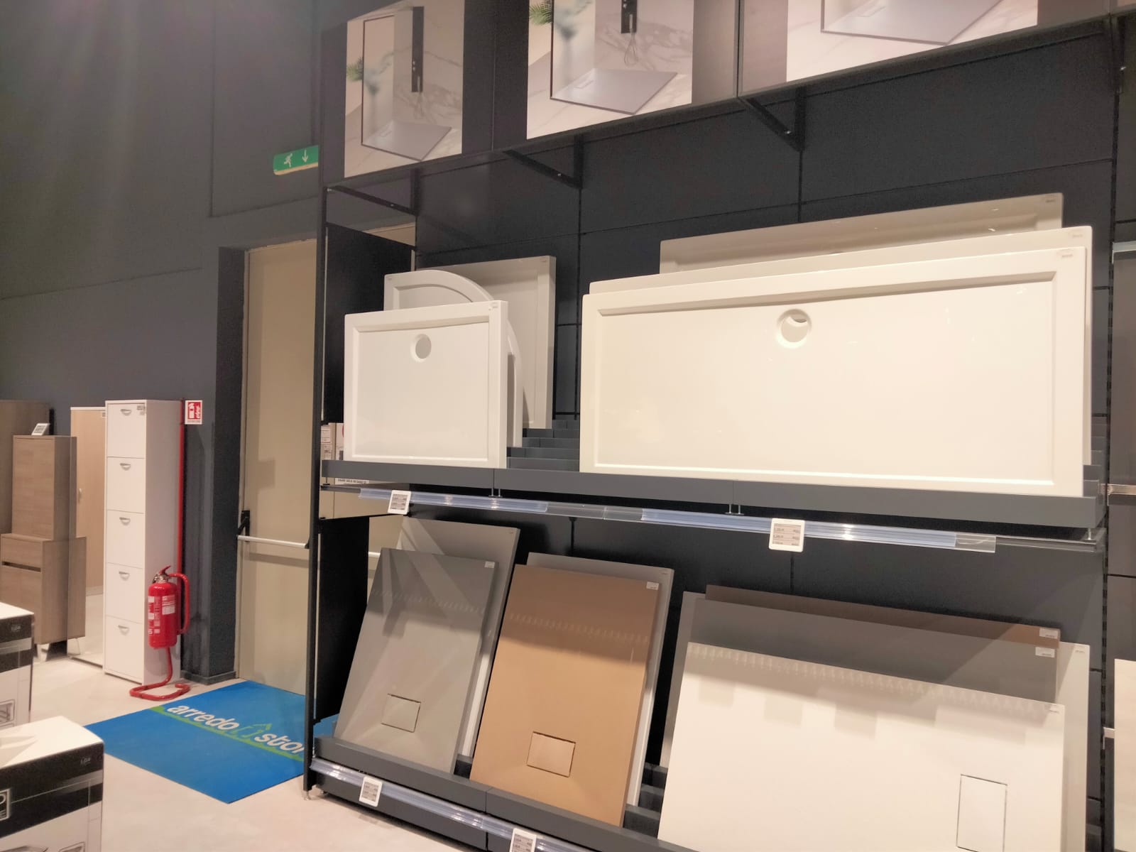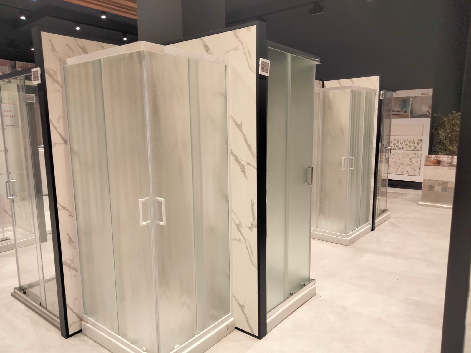 La ristrutturazione si è sviluppata interessando circa 1.500 mq suddivisi tra arredo, con il supporto di Pensarecasa, e lo showroom dedicato al mondo progetto che coinvolge i seguenti prodotti: rivestimenti muro e pavimenti, infissi, porte da interno e blindate, mobili bagno, box e cabine doccia, accessori bagno, sanitari.