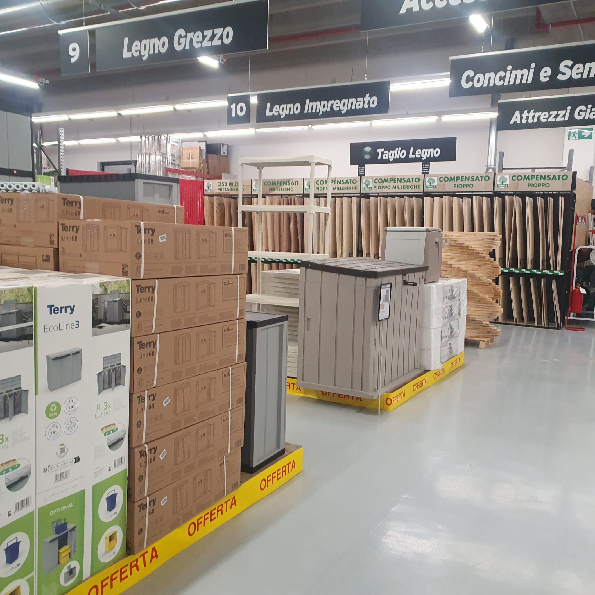 Inoltre, il negozio dedica ampi spazi a prodotti promozionali e stagionali, per soddisfare le richieste dei clienti durante tutto l'anno e accompagnarli nei loro progetti di bricolage e cura della casa e del giardino.