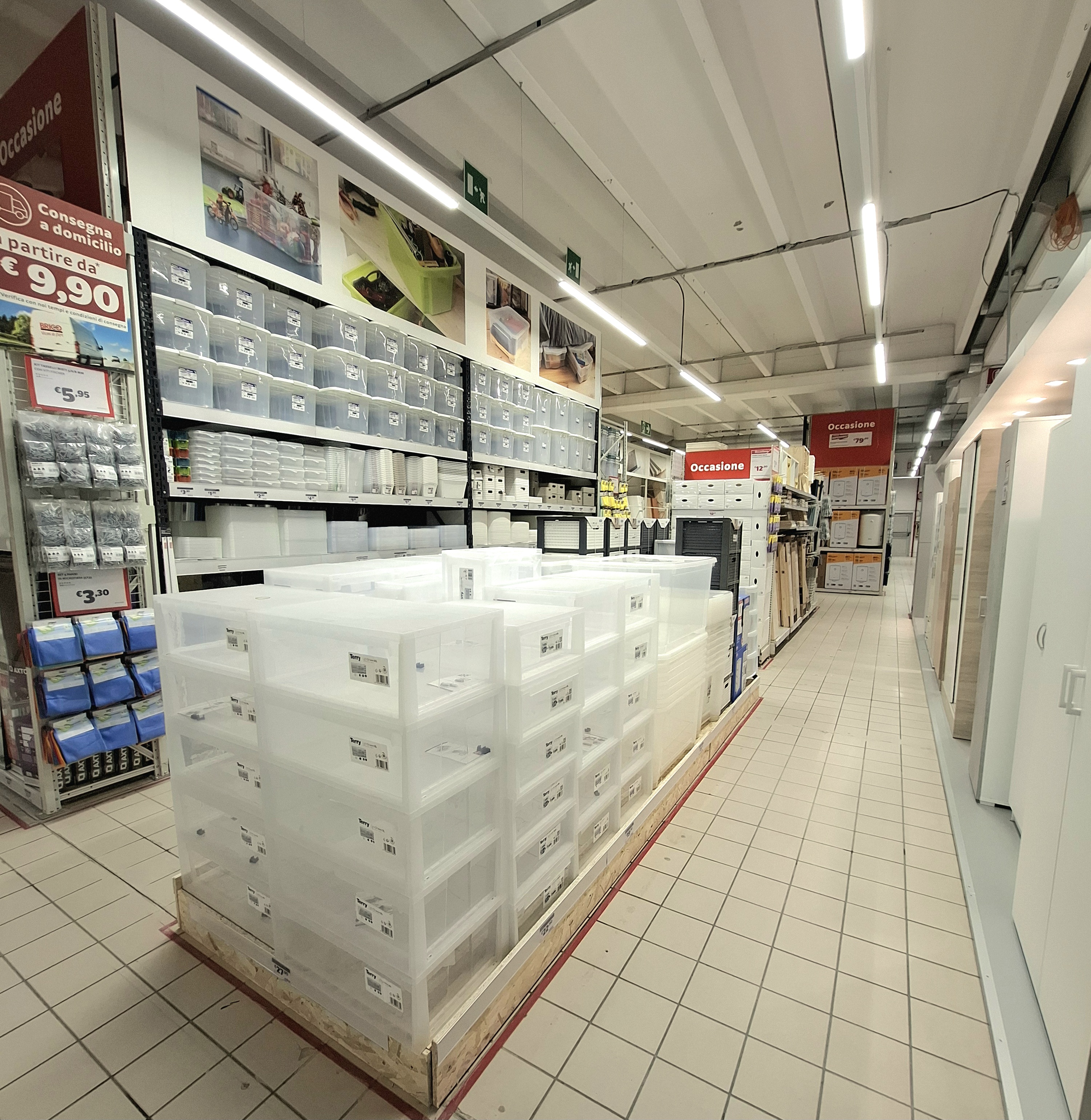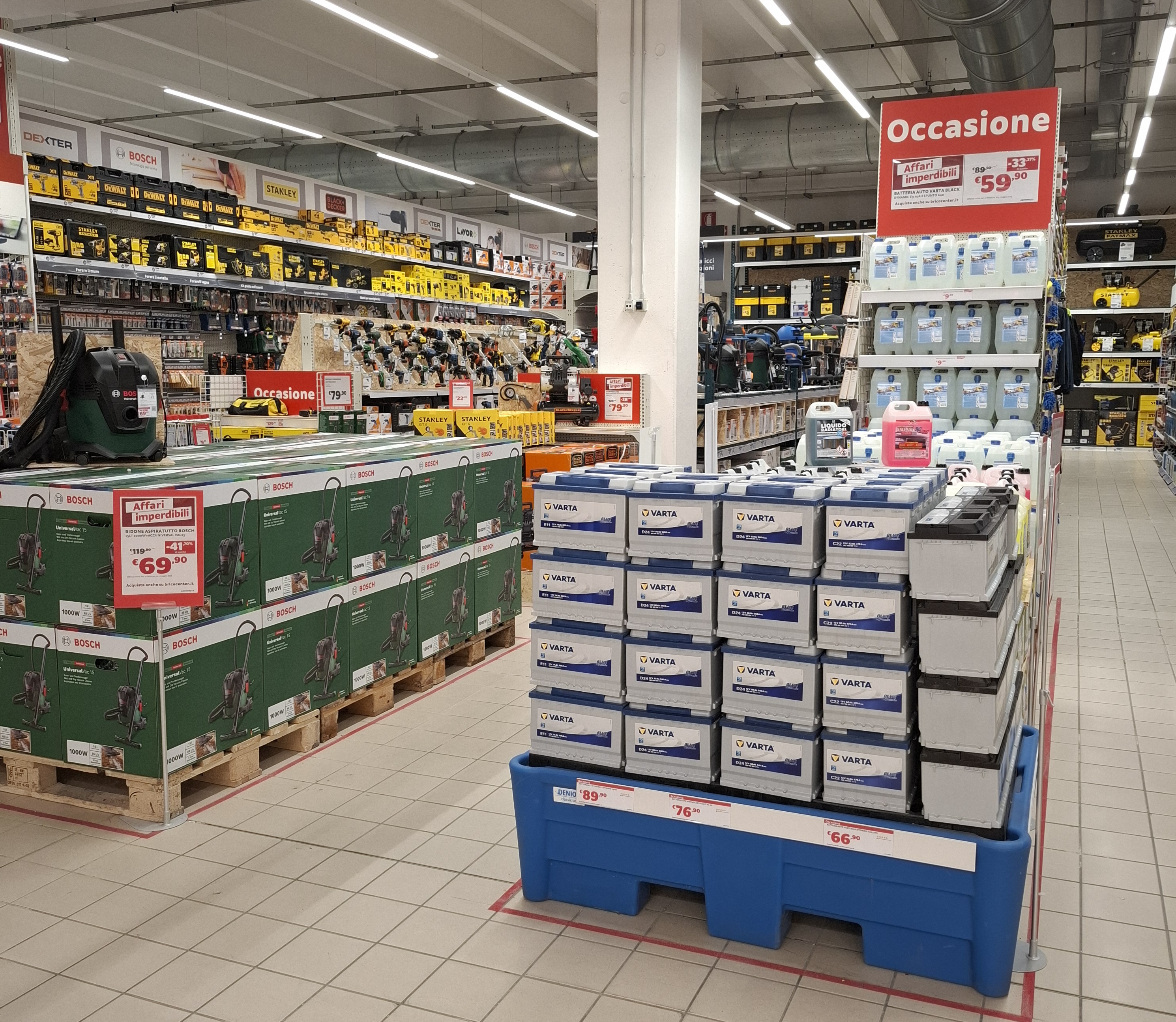L’ampia disponibilità di spazi, ha permesso di introdurre diverse nuove famiglie prodotto fra cui quella del pet e delle cucine con elettrodomestici e di sviluppare un'ampia area di showroom bagno e arredo giardino.