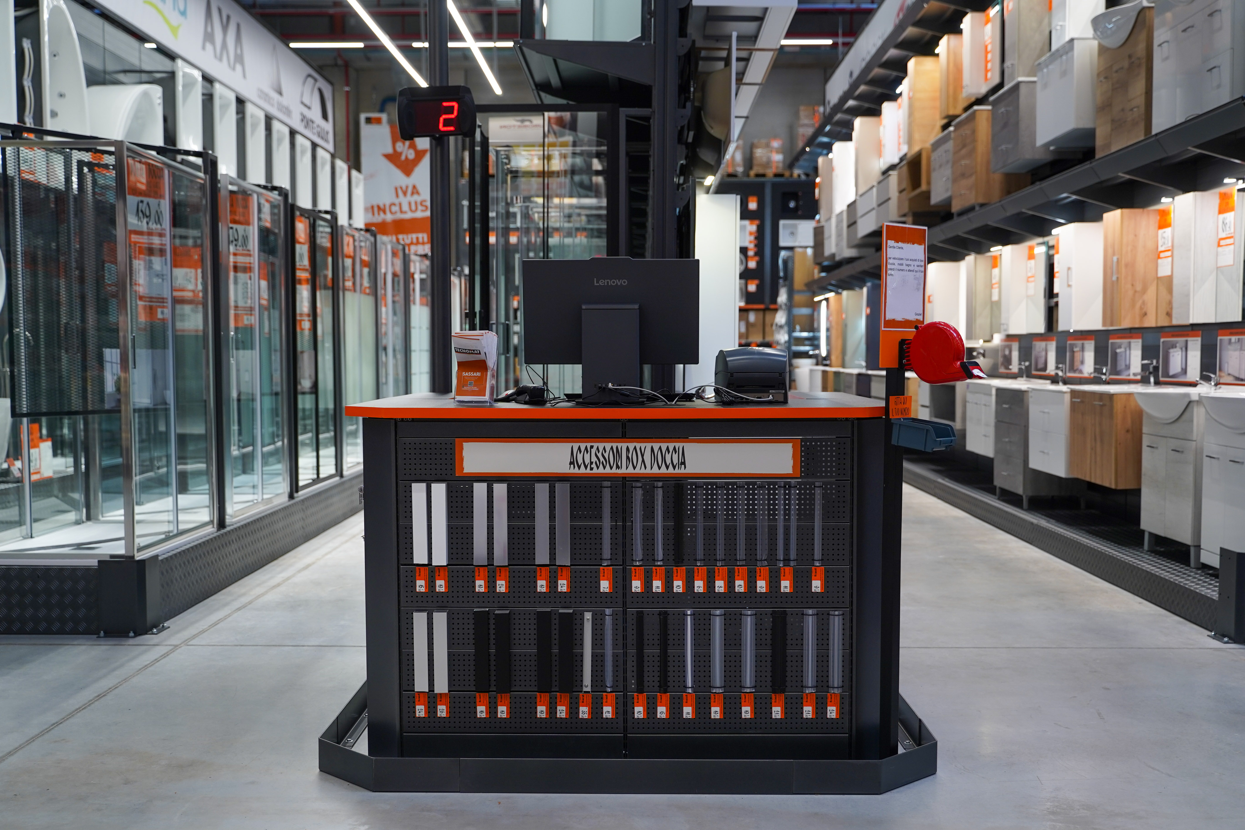 La formula innovativa di vendita all’ingrosso e al dettaglio permette di essere un punto di riferimento sia per i clienti privati sia per i professionisti che hanno bisogno di avere i prodotti in grandi quantità, ad un prezzo basso e sotto lo stesso tetto, per consentire loro un grande risparmio di tempo. Dotato di un ampio parcheggio che può accogliere oltre 400 veicoli, il nuovo Tecnomat di Sassari vanta più di 25.000 prodotti tecnici e di finitura di uso corrente presenti all’interno dei reparti idraulica, elettricità, edilizia, falegnameria, sanitari, piastrelle, ferramenta, utensileria e vernici.