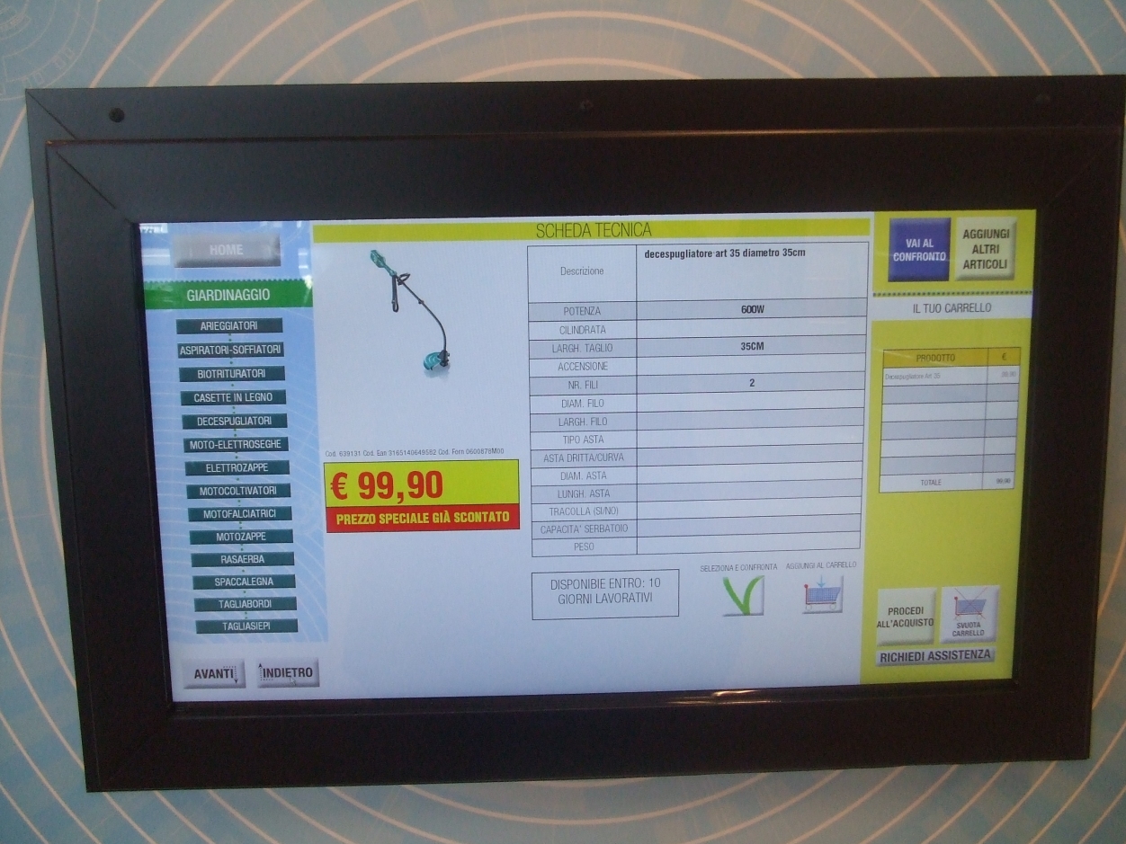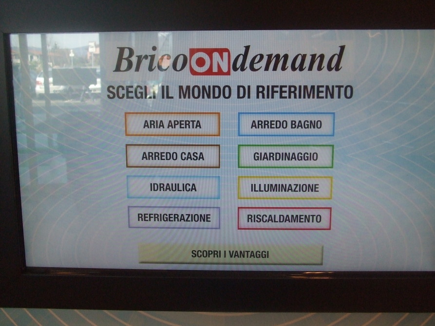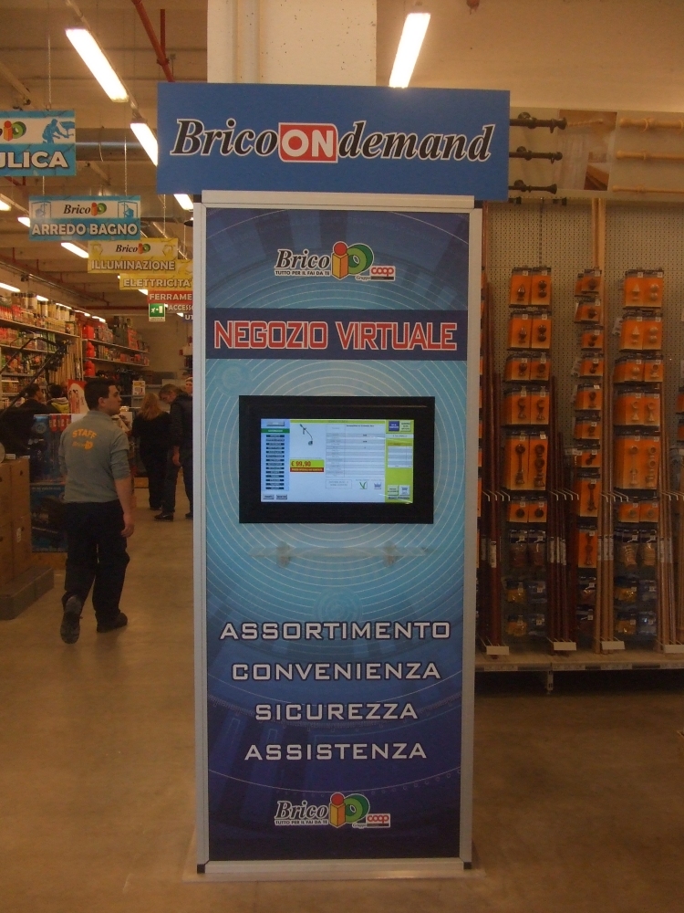Lo sforzo dello staff è stato quindi quello di adattare l'offerta alle dimensioni, sviluppando le corsie in altezza e riservando gli spazi più in alto, quindi difficilemente raggiungibili, alla didattica. All’ingresso del Brico IO di Trescore Balneario è stato allestito il totem interattivo BricoONdemand, il negozio virtuale ideato da Marketing Trend tramite il quale la clientela, assistita da personale esperto del negozio, potrà ordinare e ricevere direttamente a casa nell’arco di pochi giorni 1.500 articoli – nei settori aria aperta, arredo bagno, arredo casa, giardinaggio, idraulica, illuminazione, refrigerazione e riscaldamento – selezionati da Brico IO e che integrano ed espandono l’offerta fisicamente presente in negozio.