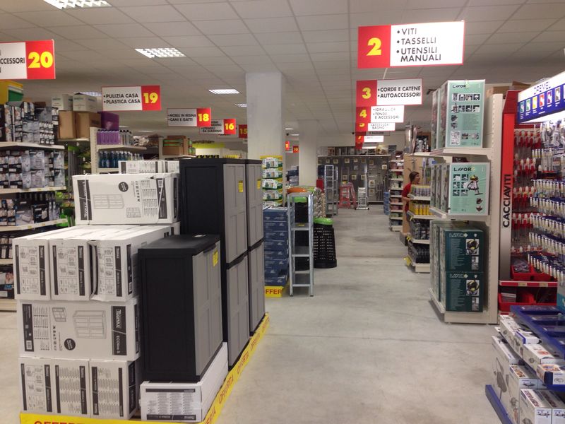 Lo spazio bricolage occupa buona parte della superficie, partendo dagli utensili elettrici, passando per ferramenta, autoaccessori, colle e vernici, idraulica e in ultimo, ma non per questo meno importante, il reparto legno, con mensole già pronte al montaggio o pannelli a taglio.