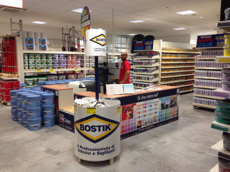 Di fronte al reparto legno è installato il box info con il tintometro, strumento ormai diventato parte integrante di Brico OK.