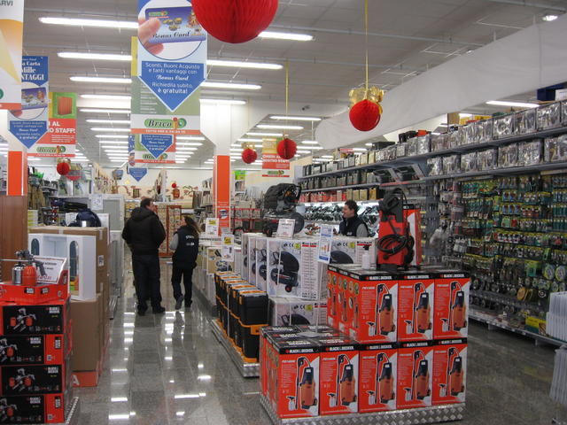 Il percorso ideale vede il cliente avanzare fino a metà della profondità dell’area di vendita, prendendo così visione delle merci in promozione, per poi continuare la visita addentrandosi ancora più in profondità nei reparti giardinaggio, in posizione perimetrale a sinistra (e completato da un’esposizione esterna) e decorazione leggermente più a destra. Proseguendo verso destra il cliente percorre la corsia principale, ai cui lati trova, sulla sua sinistra i reparti illuminazione, elettricità, idraulica, arredo bagno e l’esposizione dei mobili in kit. Sul lato sinistro della corsia, la porzione