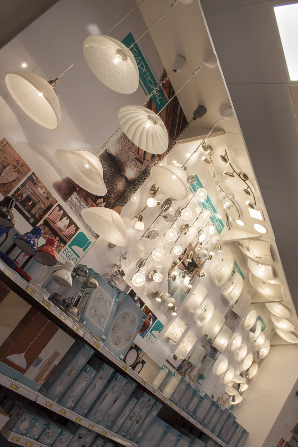 Le “aree/stanze” sono 4, la prima che il cliente incontra è la “stanza promozionale” dove, oltre alle referenze da volantino, accoglie l’area stagionale. Oltrepassando l’arco, il cliente entra nella seconda “area/stanza” dove è situato il reparto bricolage, cioè ferramenta-utensileria-vernici e legno. Continuando si trova la stanza “casa” con i reparti di illuminazione-idraulica-casalinghi. Infine si incontra l’area elettricità e giardinaggio.