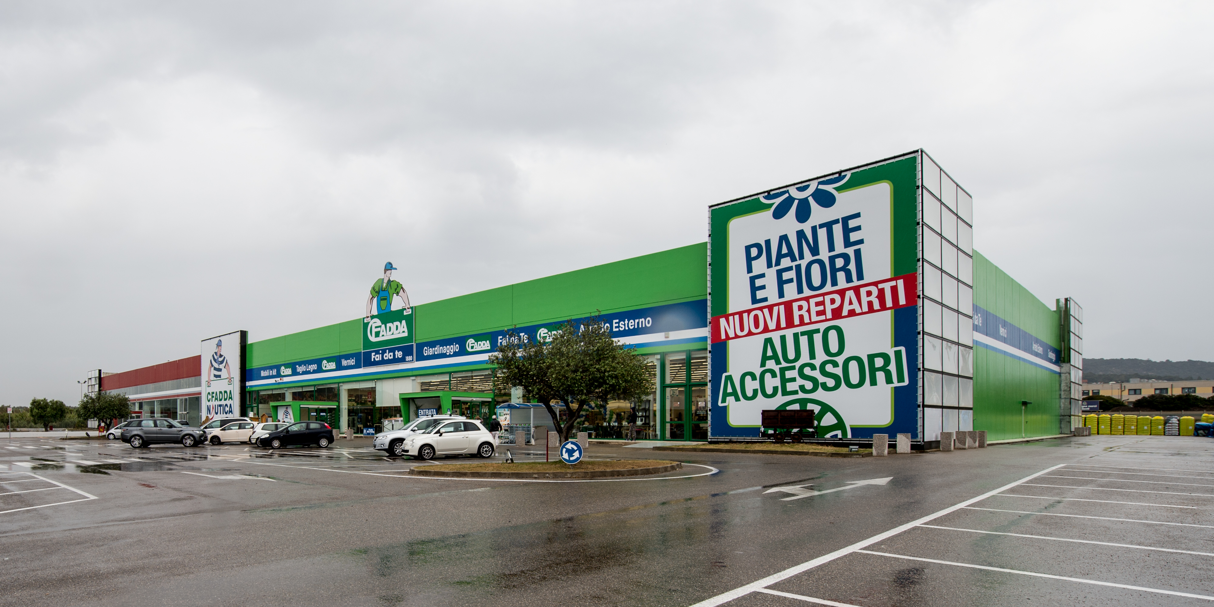 Nel 2006 CFadda Carbonia si è trasferito da via Roma a via Nazionale, e nell’anno in corso festeggia il suo primo decennio nell’attuale stabile. I 136 anni di esperienza nel settore del DIY non rallentano la corsa dell’azienda che agisce ogni giorno sotto la guida di tre parole chiave: rinnovamento, innovazione, formazione. Sotto questa spinta si collocano le operazioni di restyling dei punti vendita di Cagliari, Sestu, Tortolì, Porto Torres e infine Carbonia, sottoposto a numerose modifiche che ne hanno migliorato l’aspetto e la funzionalità. A partire dall’esterno, le torri ai lati del punto vendita sono state utilizzate per comunicare ai clienti le immediate novità, attraverso grafiche extralarge, impattanti e visibili a grande distanza. L’ingresso è invece un’immersione nei colori e nella varietà dell’assortimento presente. Il perimetro interno è stato arricchito da pannelli riportanti suggestive immagini riferite alle merceologie corrispondenti a ciascun punto del negozio, che agevolano i clienti nell’orientarsi all’interno dello store, individuando subito e in modo piacevole le aree di interesse.