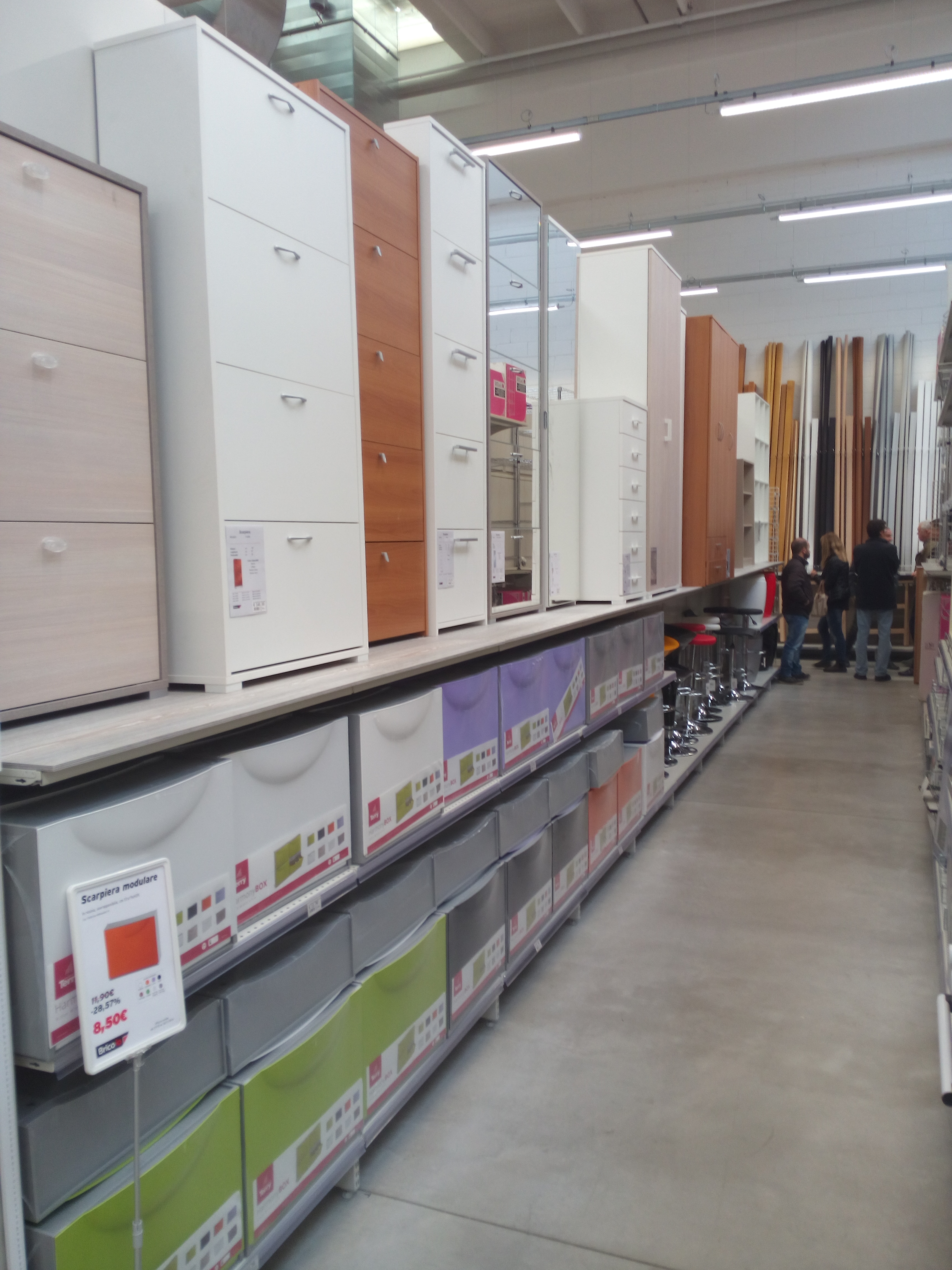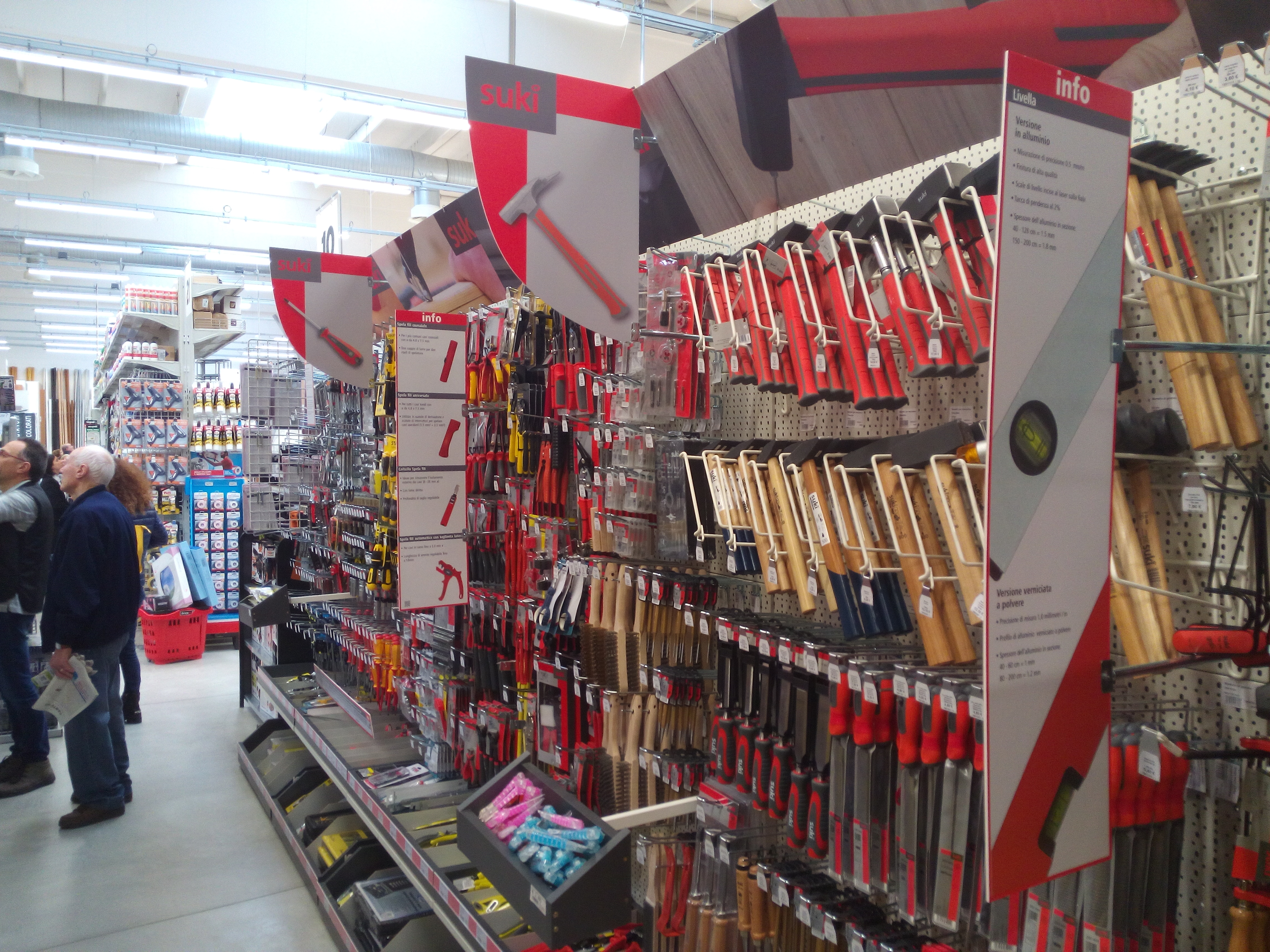 di circa 30 mila referenze, suddivise fra i 15 reparti: accessori auto, arredo bagno, casa, complementi d’arredo, decorazione, piccola edilizia, elettricità, ferramenta, giardinaggio, idraulica, illuminazione, legno, scaffali, utensileria elettrica e manuale e vernici e colle, cui si