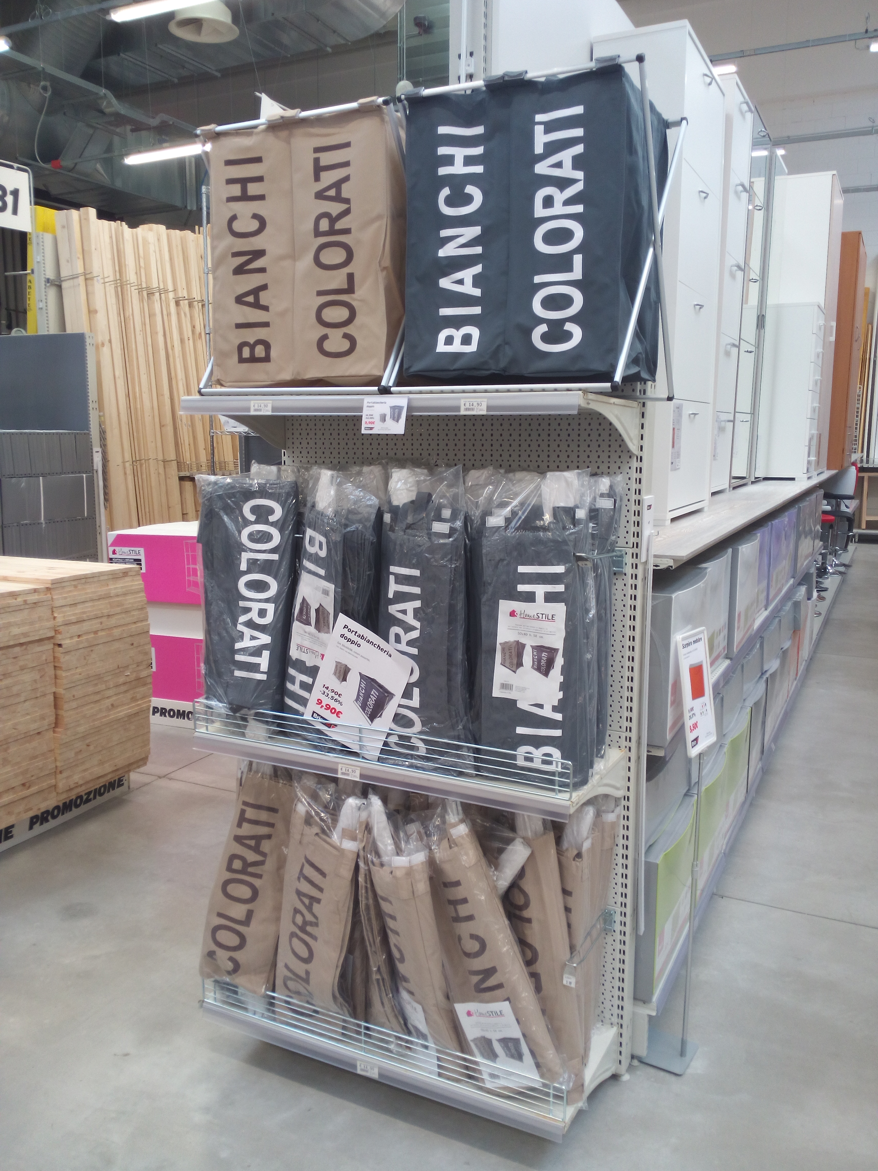 degli articoli stagionali. Addentrandosi nel punto vendita, sulla sua destra, trova immediatamente il corner L’Outlet del Kasalingo, seguito da quello Bolle blu, e dai reparti casa, scaffali e legno, con servizio taglio legno in posizione perimetrale.