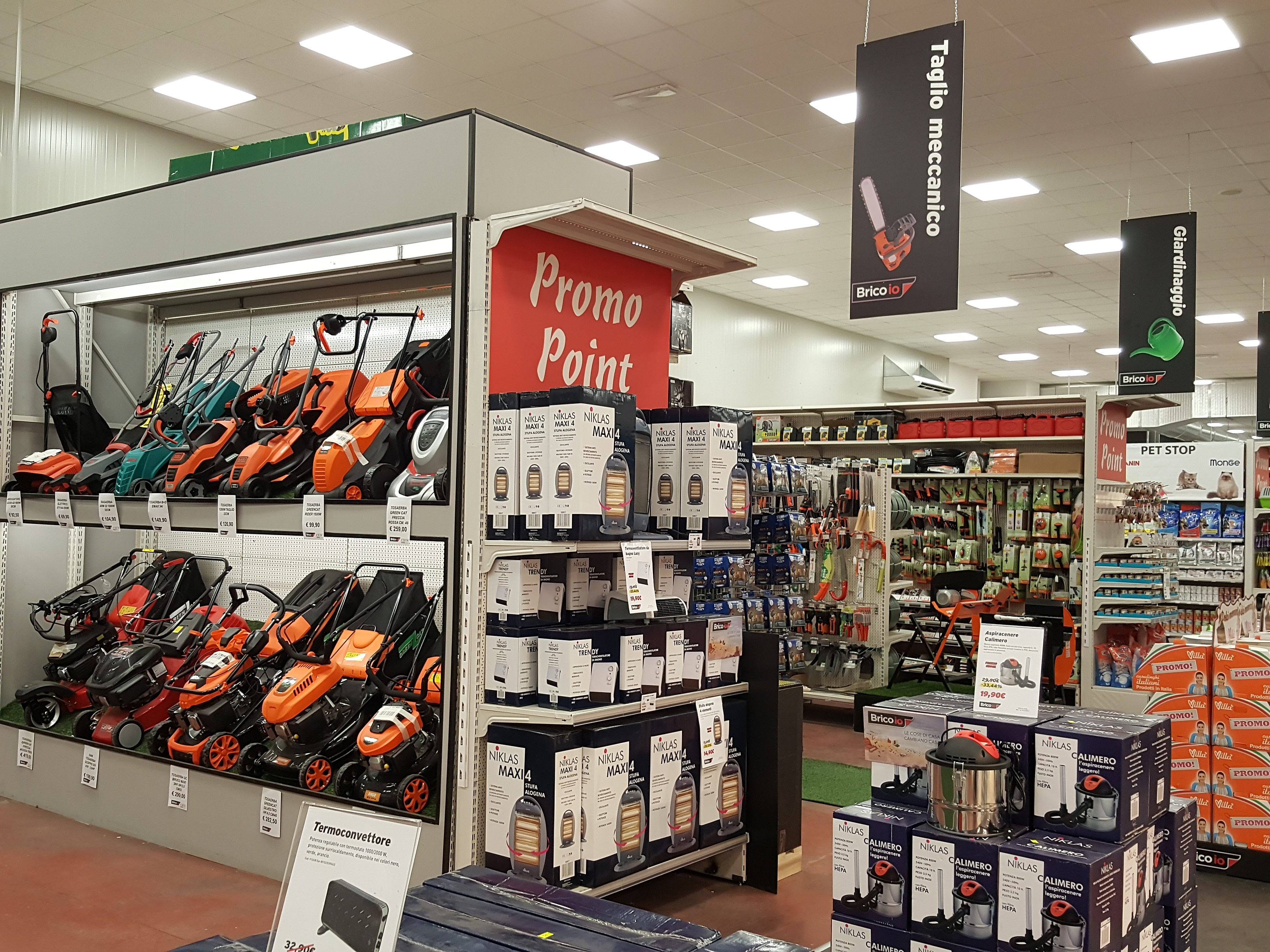 Altro elemento di continuità con gli altri punti vendita Brico io aperti da Defi Bricò è il layout a mondi, per favorire come altrove la godibiità e leggibilità degli assortimenti.