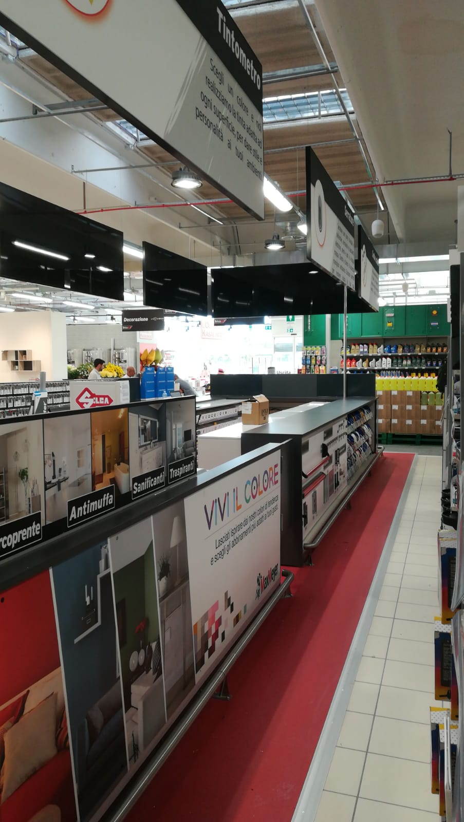 ai corner specializzati, ai reparti decorazione, bagno e casa e ai reparti auto, ferramenta, vernici, legno e giardinaggio.
