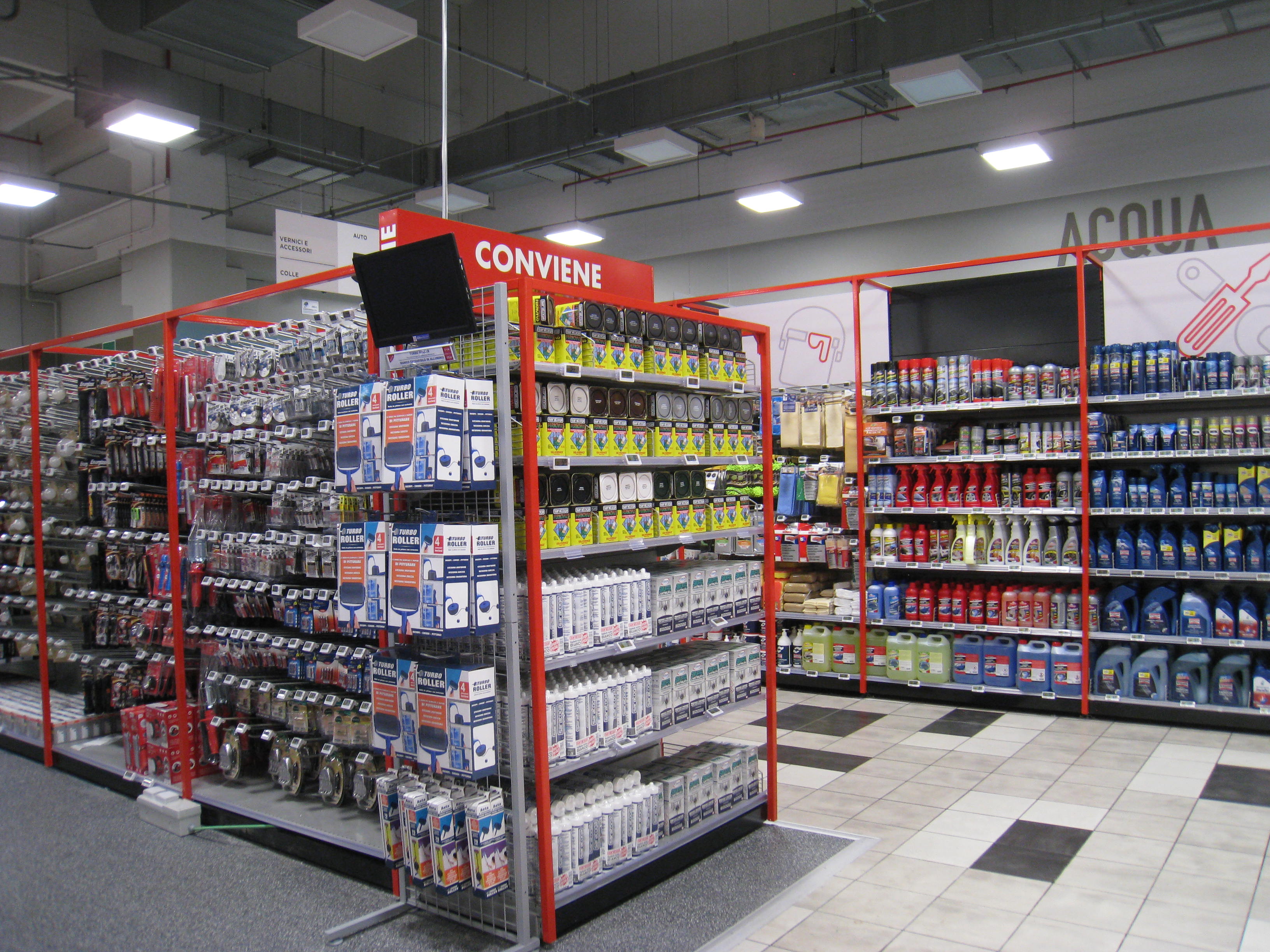 I reparti disposti con sequenza di facile lettura per percorrere l’area comodamente e facilmente trovare ciò di cui si ha bisogno. Tutto ciò che occorre per un fai da te “leggero” e di prossimità.