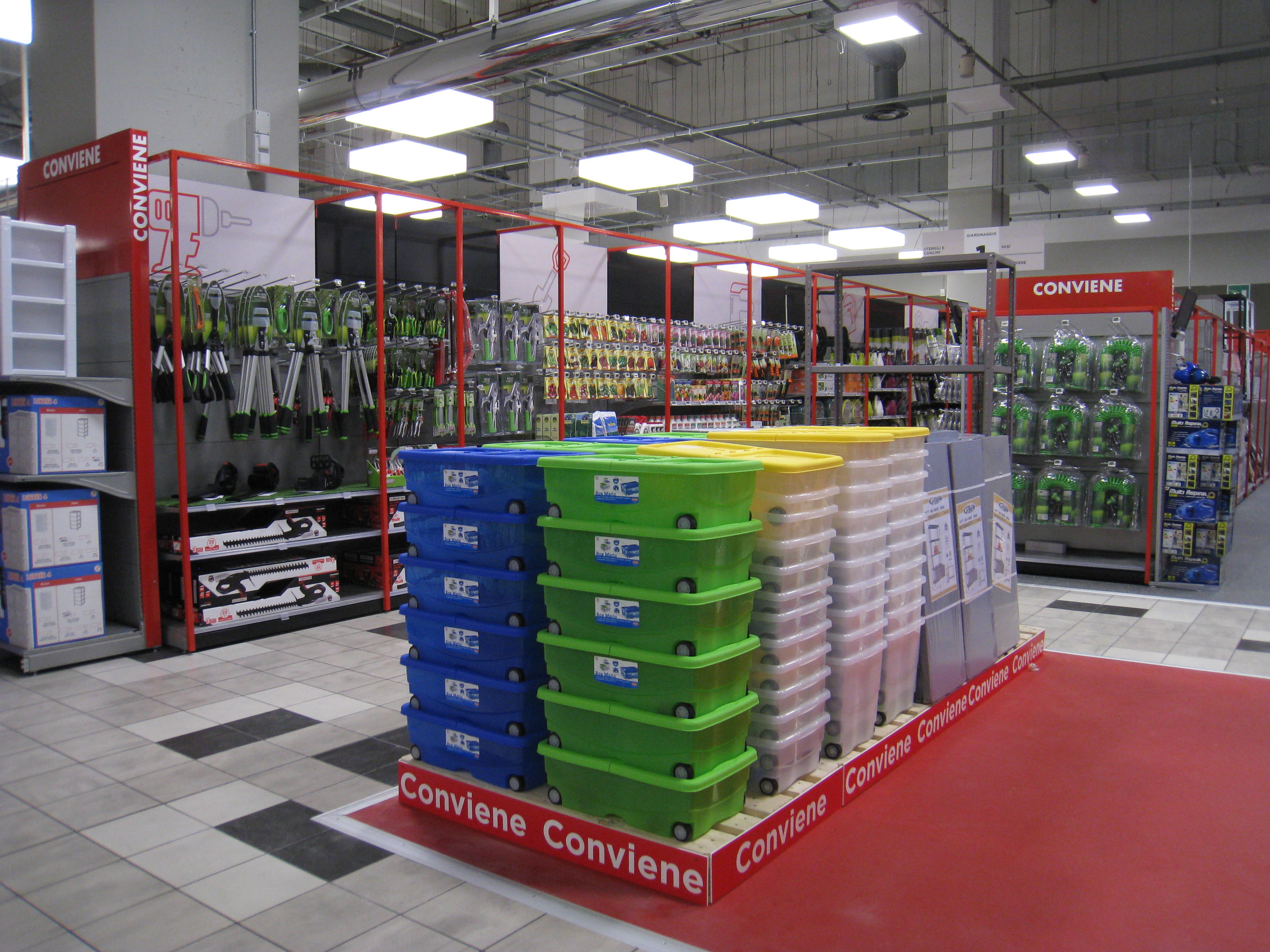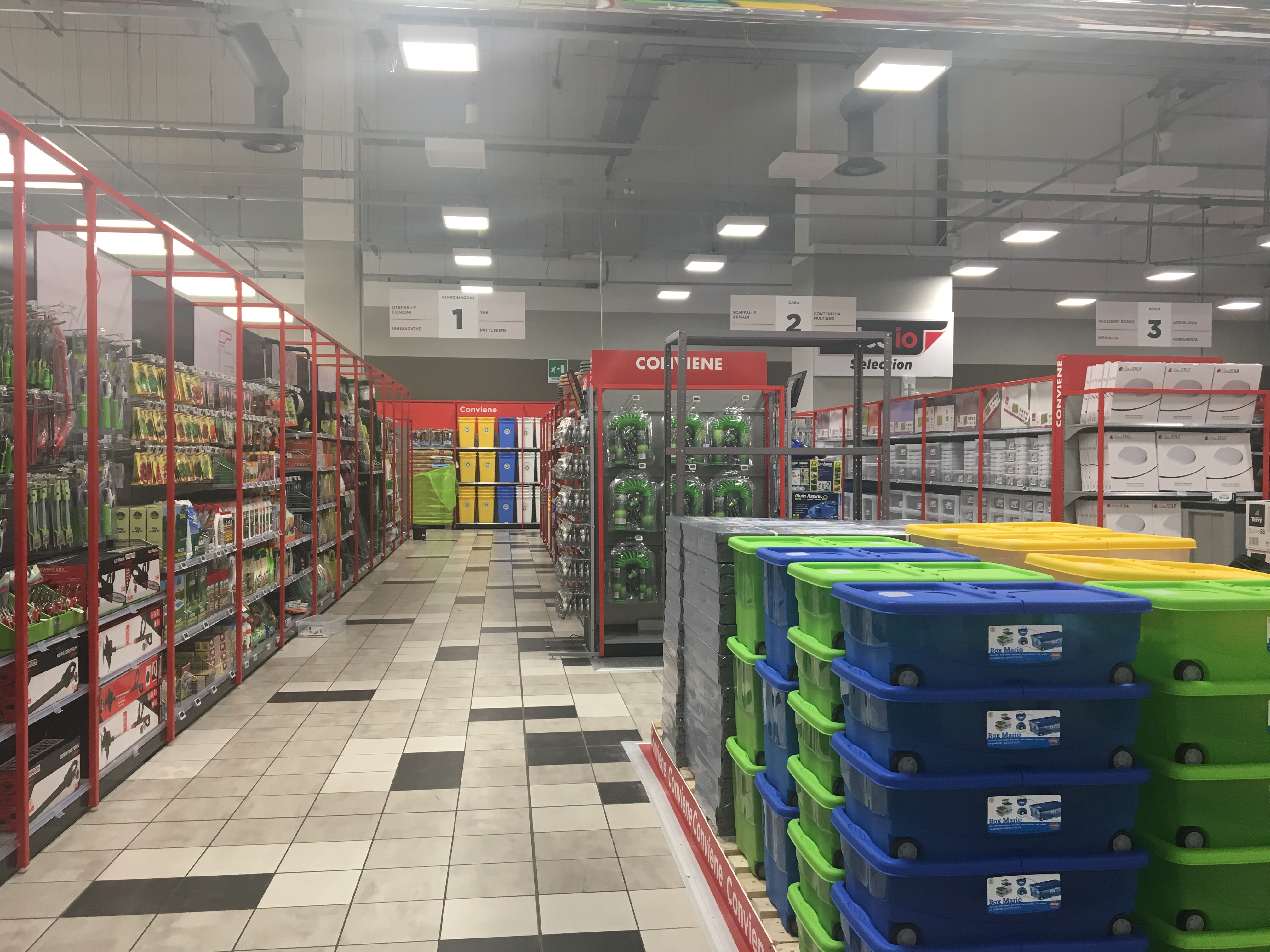 Particolare importanza è stata data alle aree promozionali e stagionali in modo da consentire una maggiore dinamicità delle offerte, un cambio più frequente e veloce rispetto agli allestimenti di un “brico” tradizionale, proprio perché trovandoci all’interno di un ipermercato siamo in un contesto dove la frequenza di visita è sicuramente maggiore.