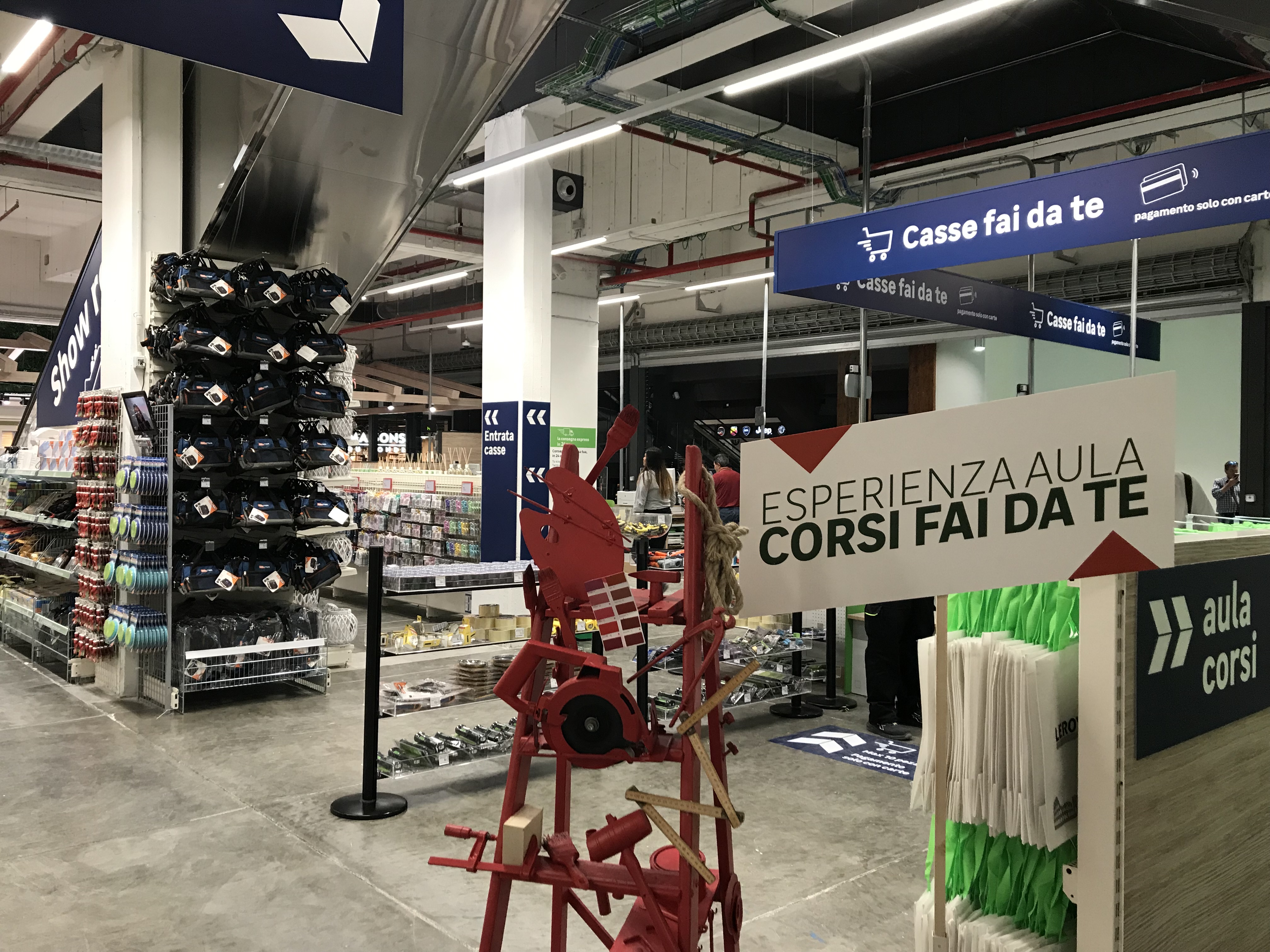 Tra le caratteristiche distintive del punto vendita, che coinvolge entrambi i piani, c’è la presenza di due sale Corsi Fai da Te dedicate agli appassionati del miglioramento della casa (adulti, bambini e scuole).