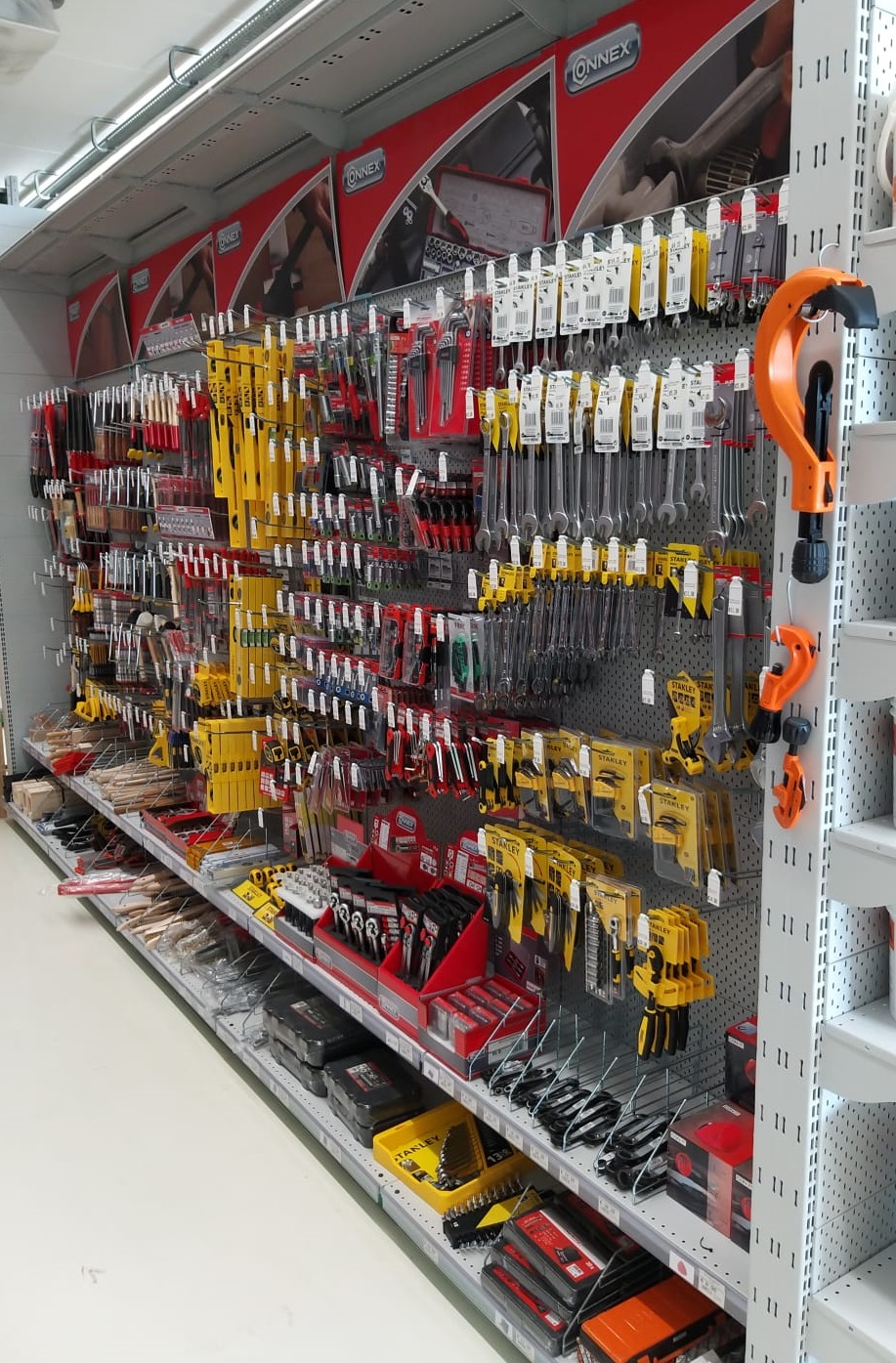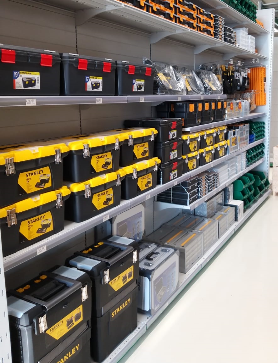 Tra i Reparti presenti nel corner Brico io troviamo Ferramenta, Utensileria elettrica e manuale, Bagno e accessori, Colle e piccola Edilizia, Pitture, Smalti, Pennelli, Autoaccessori, Scaffali, Scale.
