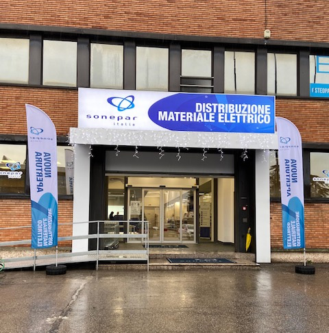 Taglio del nastro a Verona per il nuovo punto vendita di Sonepar Italia, l’azienda leader in Italia nel mercato della distribuzione di materiale elettrico trasferisce il suo punto vendita di Caldiero (VR) per aprire uno store più grande, a libero servizio, di 1200 mq., situato in una delle vie di accesso alla città, in via delle Nazioni n. 2.