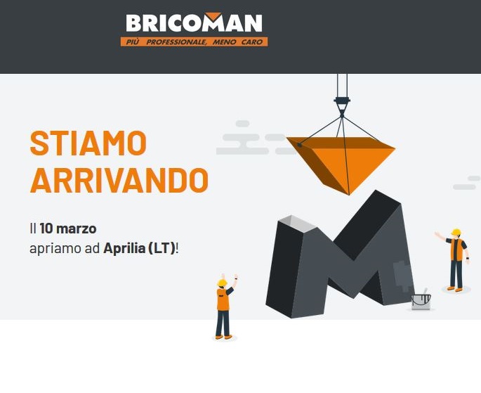 Il 10 marzo Bricoman aprirà ad Aprilia, in provincia di Latina, il suo 25esimo punto vendita in Italia, il terzo nel Lazio (insieme ai due della Capitale, Roma Fidene e Roma Prenestina).