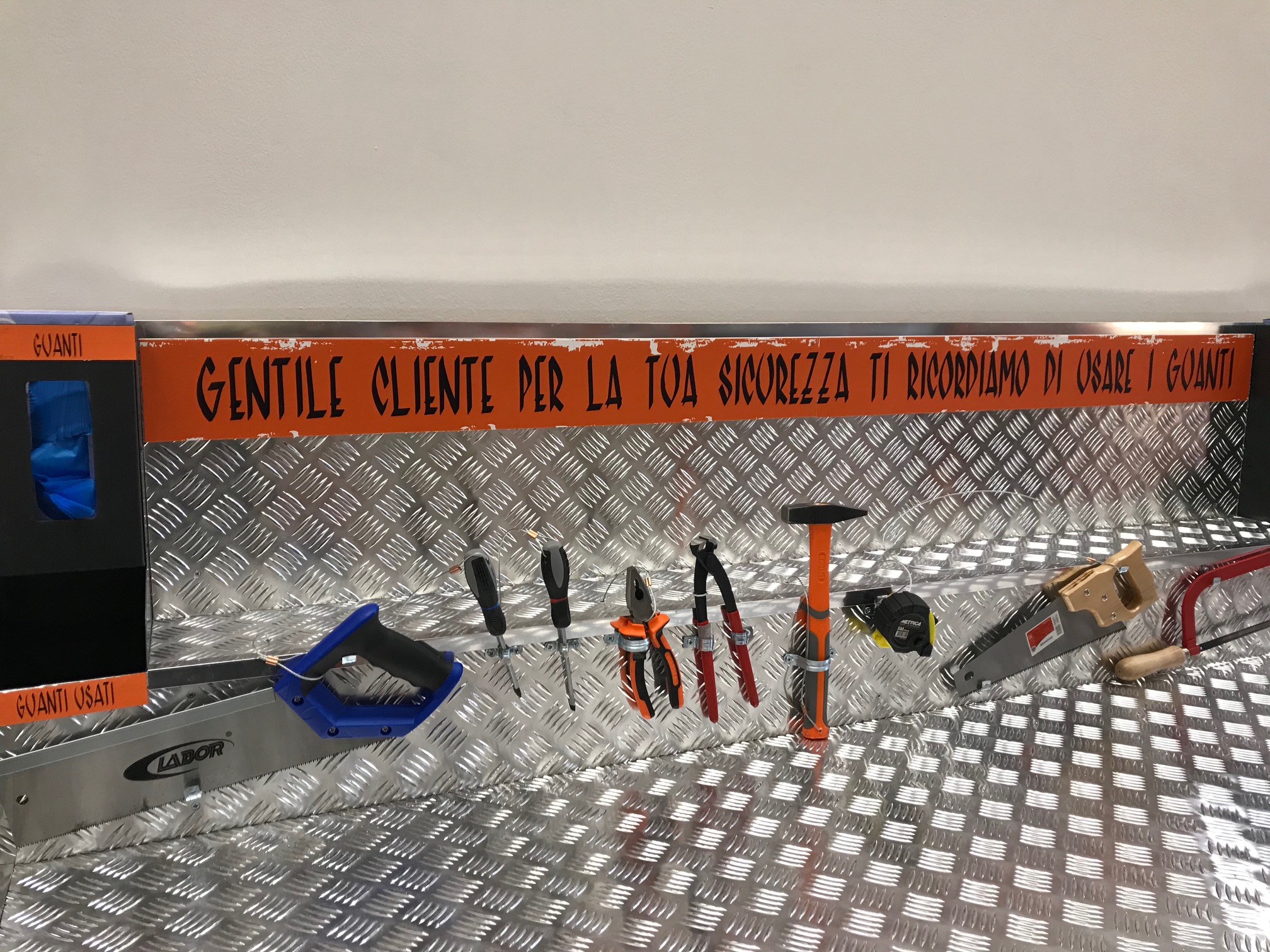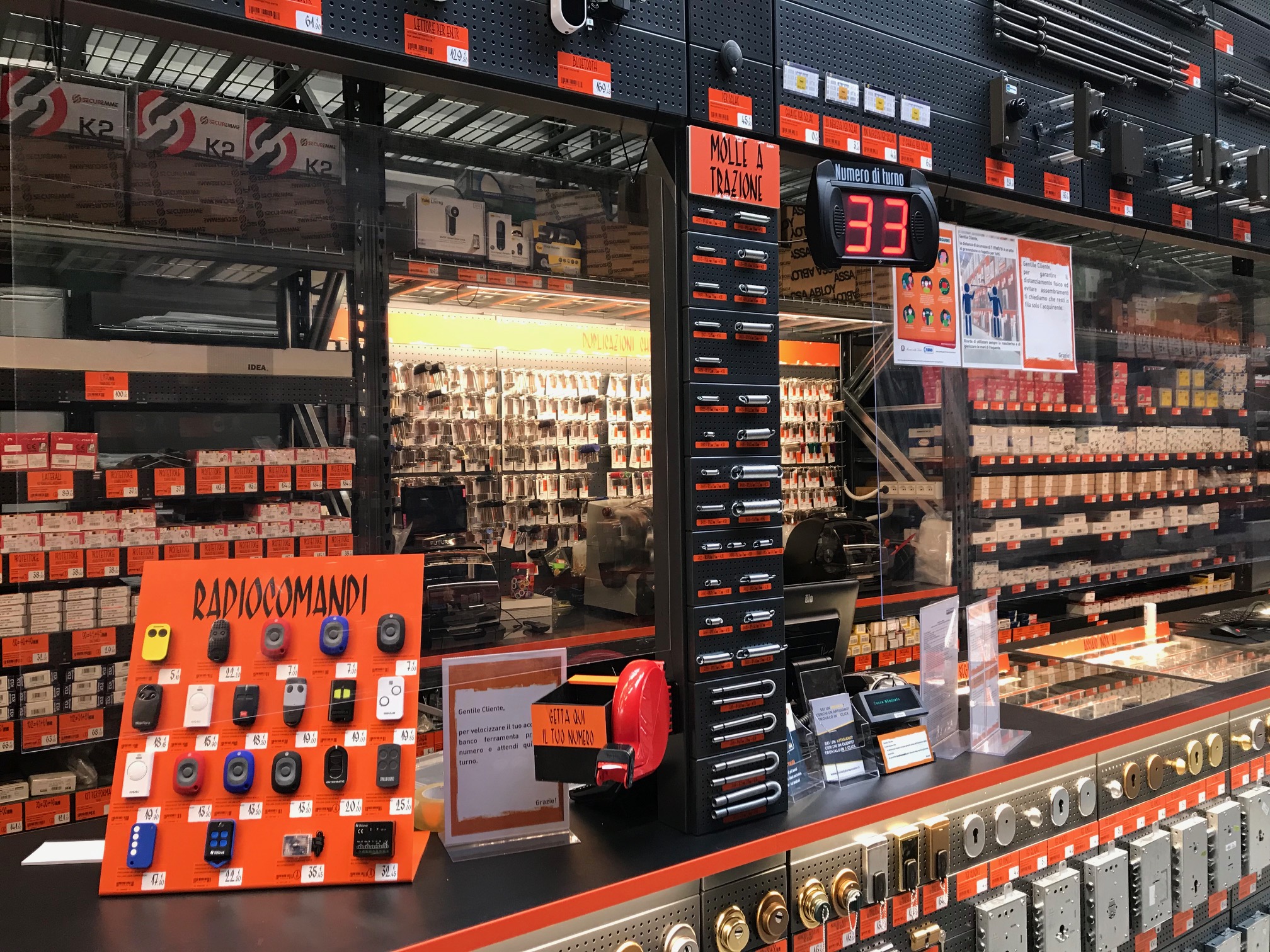 Il banco dei servizi (ben visibile fin dall'ingresso perchè posizionato in fondo al corridoio centrale) offre i consueti servizi quali tintometro, duplicazione chiavi e telecomandi.