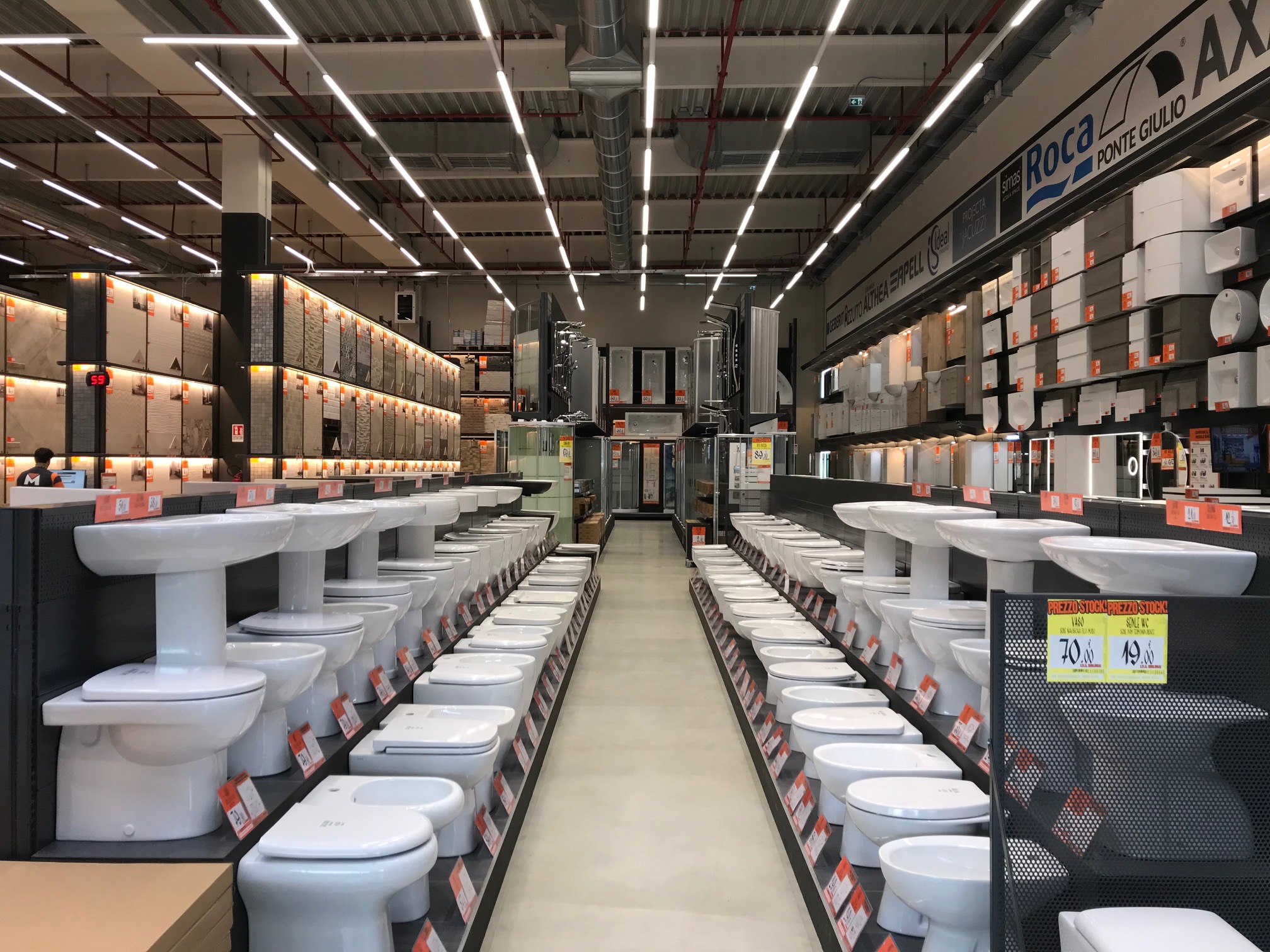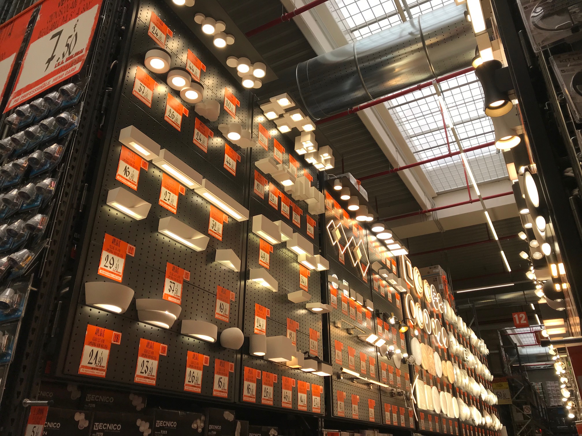 Un negozio dalle dimensioni ridotte rispetto alle metrature a cui ci ha abituato l'insegna francese, ma che riesce comunque a garantire i consueti standard di esperienza d'acquisto ai clienti professionisti e non. Il direttore del punto vendita ci ha confermato, durante la nostra visita, che l'area interna si assesta su circa 2.000 mq, una superficie ben inferiore a quella degli altri negozi Bricoman.